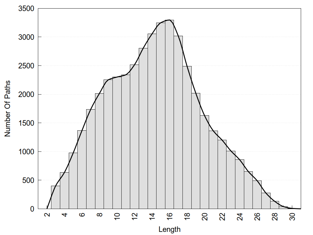 histograms of path distribution according to several parameters