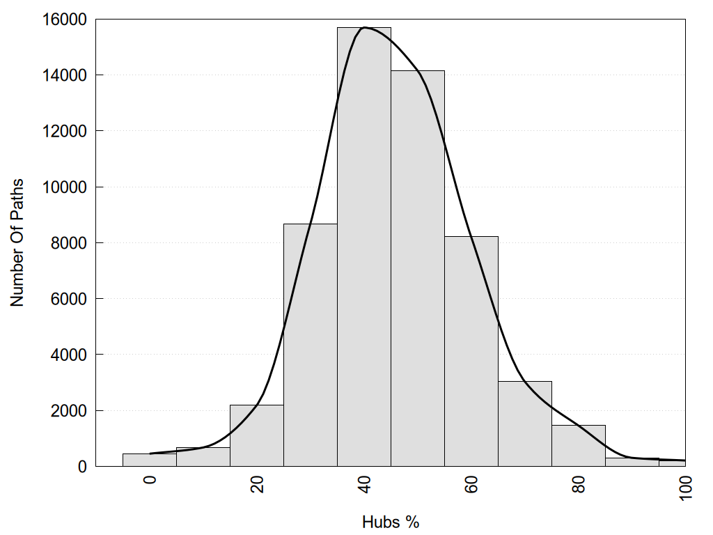 Hub1?, Hub2?: "Yes" if the corresponding node has more than 3 links, otherwise "No".