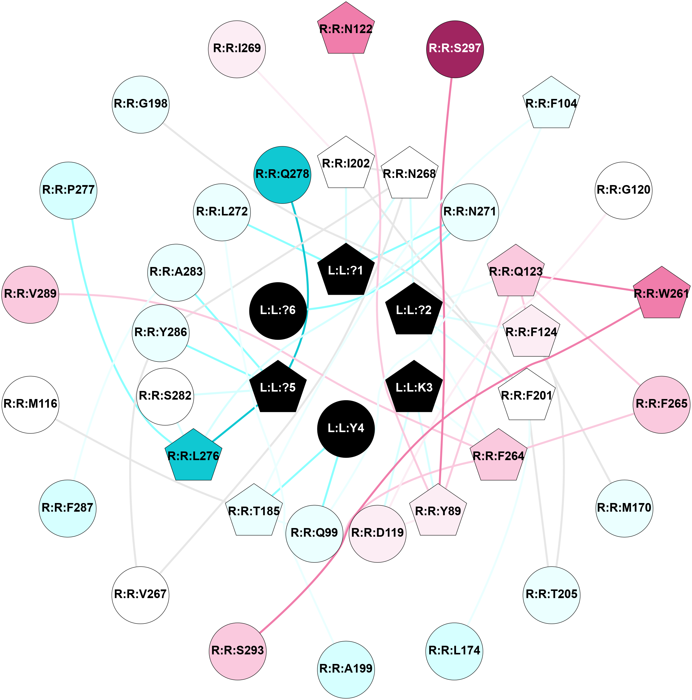 Links and nodes colored according to ConSurf Conservation Grade (See documentation): n/a 1 2 3 4 5 6 7 8 9 |
