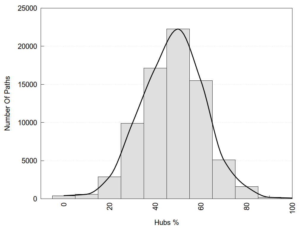 Hub1?, Hub2?: "Yes" if the corresponding node has more than 3 links, otherwise "No".