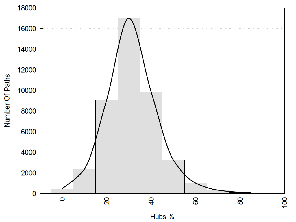 Hub1?, Hub2?: "Yes" if the corresponding node has more than 3 links, otherwise "No".