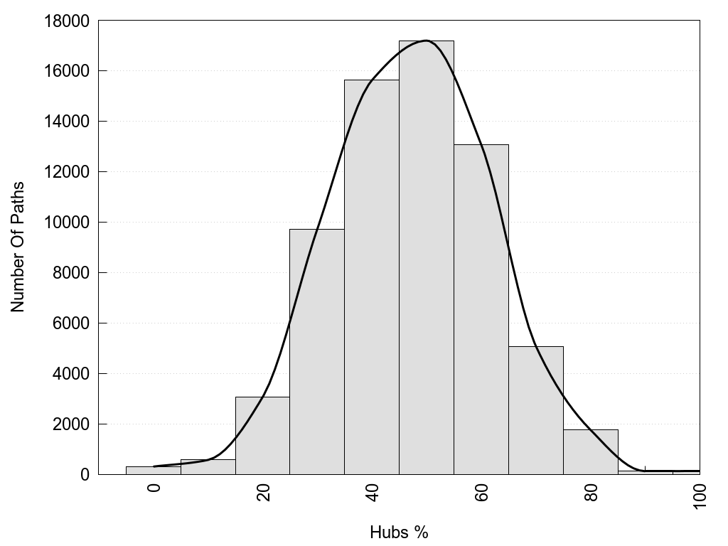 Hub1?, Hub2?: "Yes" if the corresponding node has more than 3 links, otherwise "No".