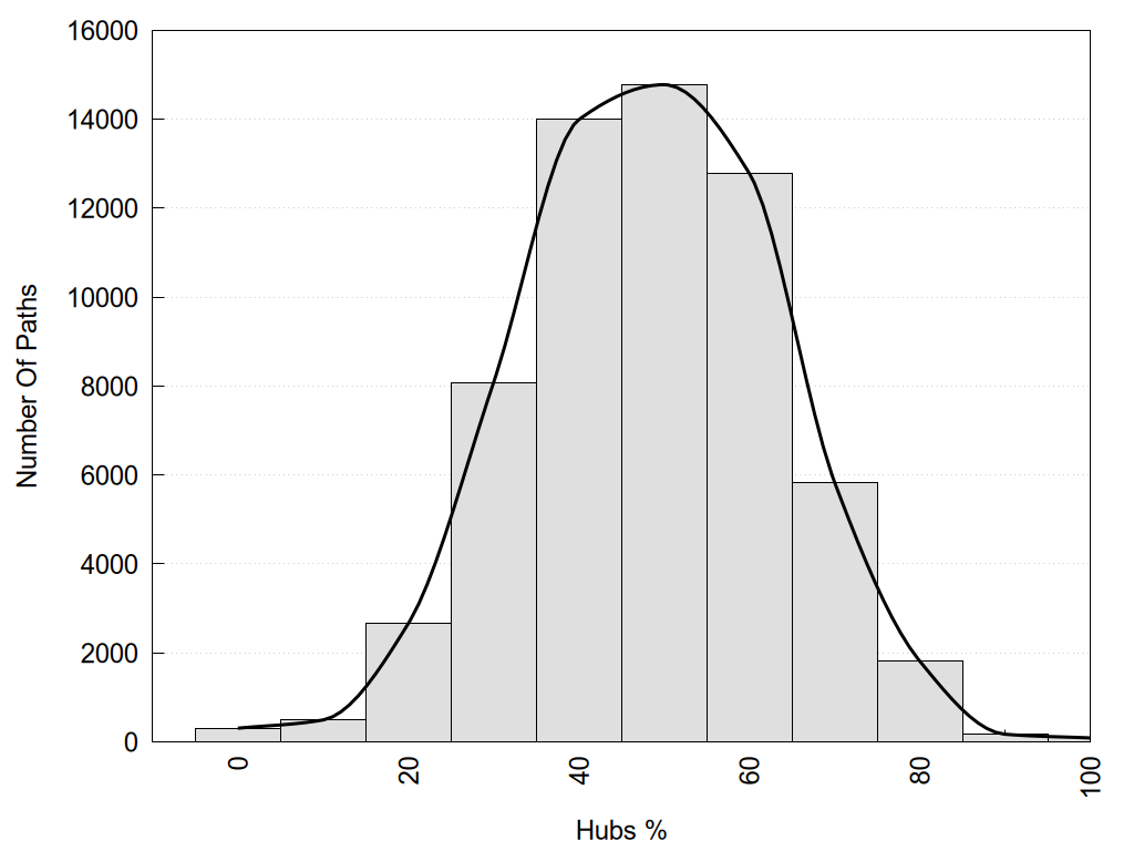 Hub1?, Hub2?: "Yes" if the corresponding node has more than 3 links, otherwise "No".