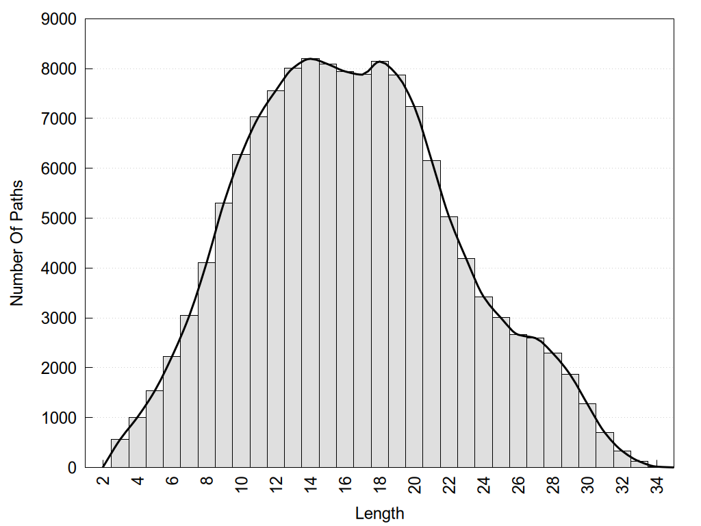 histograms of path distribution according to several parameters
