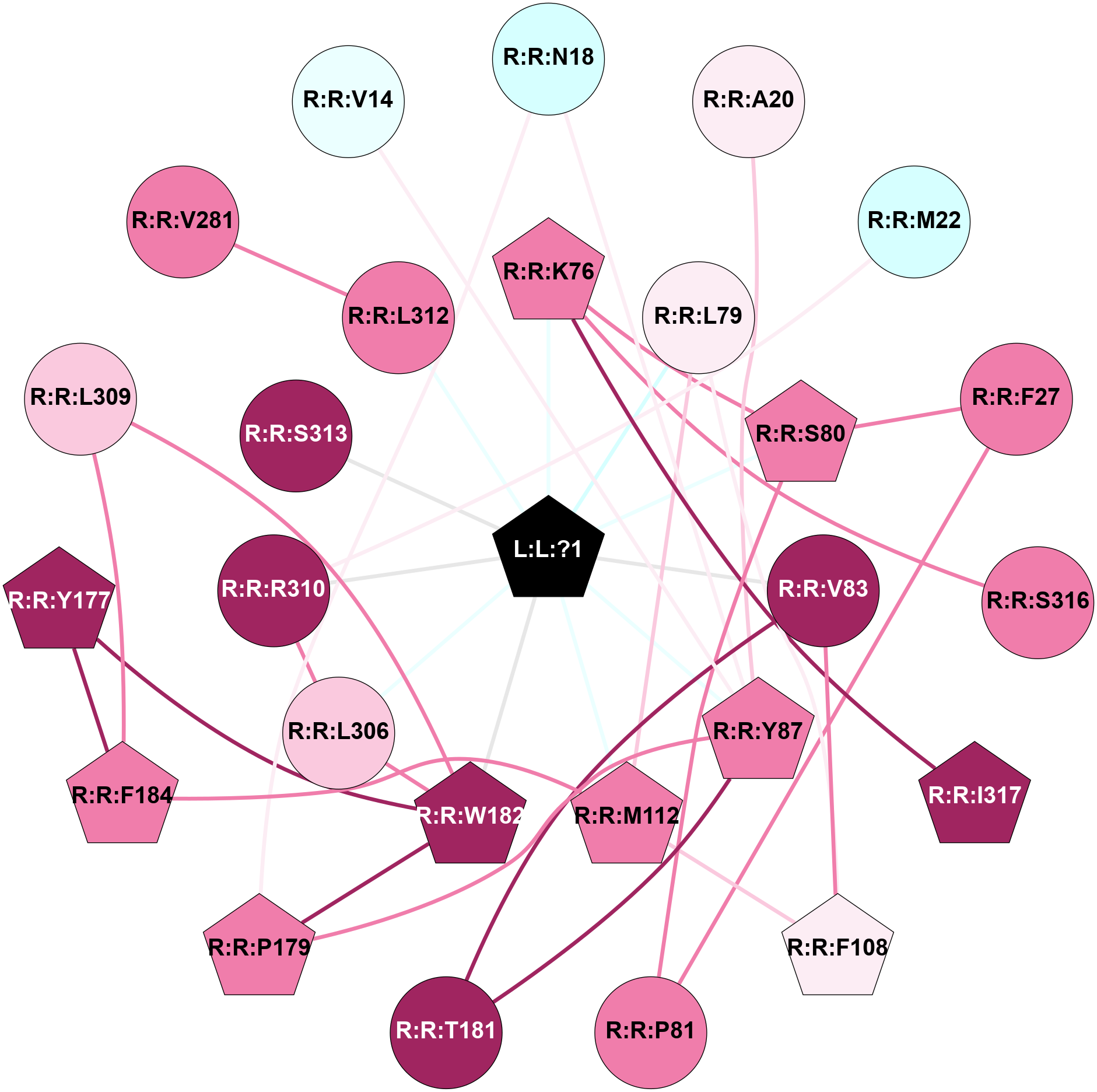 Links and nodes colored according to ConSurf Conservation Grade (See documentation): n/a 1 2 3 4 5 6 7 8 9 |