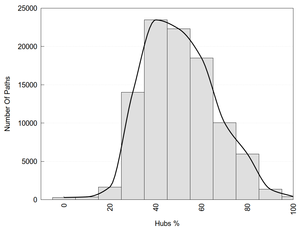 Hub1?, Hub2?: "Yes" if the corresponding node has more than 3 links, otherwise "No".