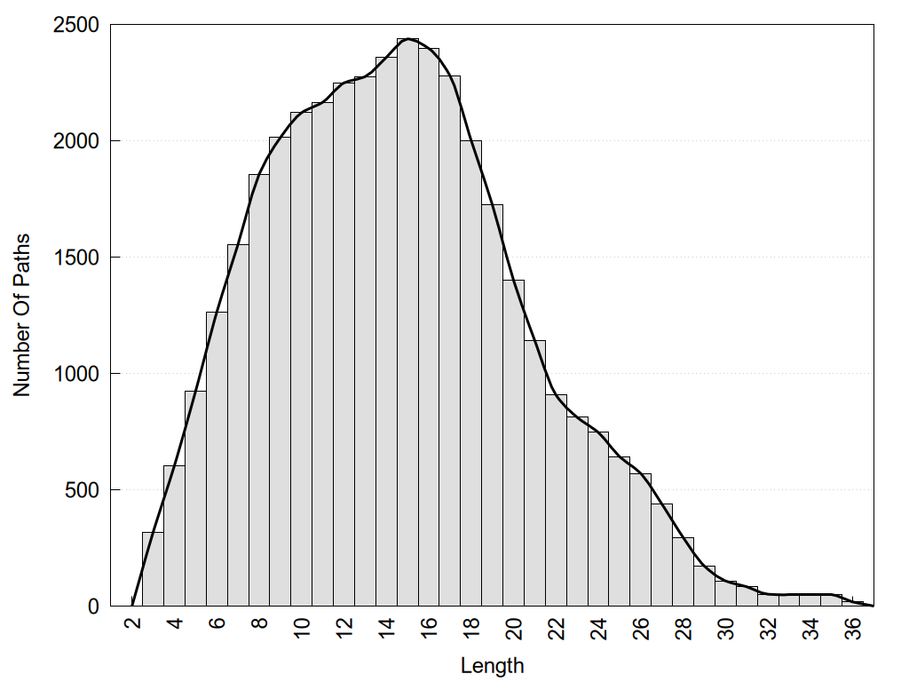 histograms of path distribution according to several parameters