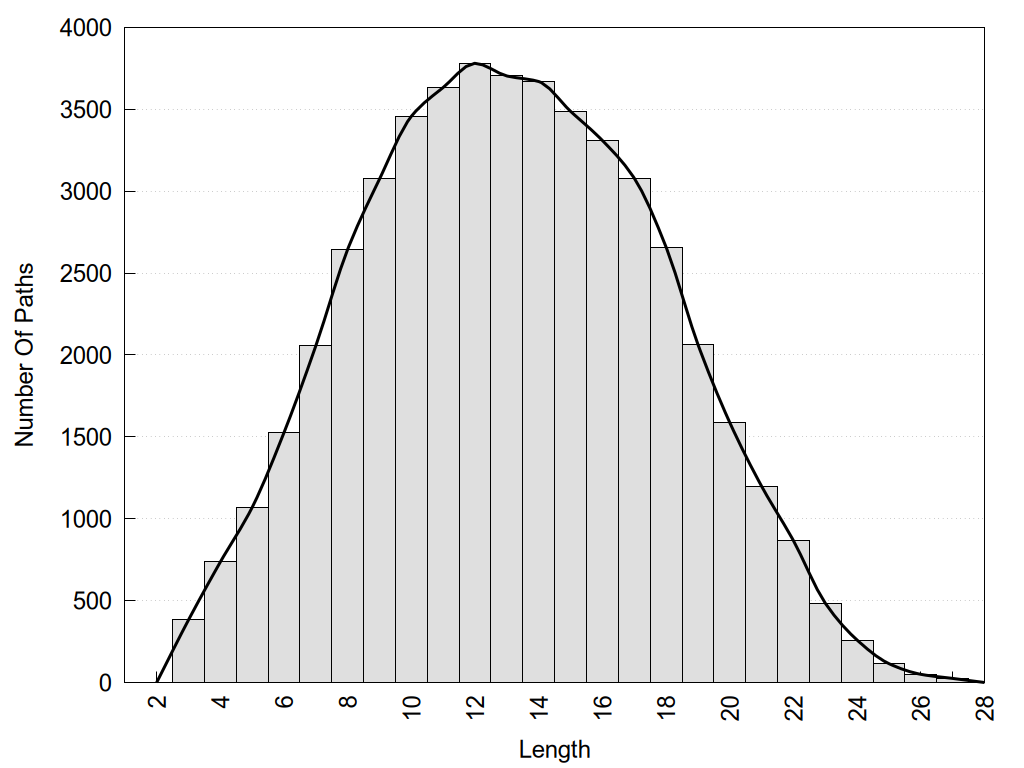 histograms of path distribution according to several parameters