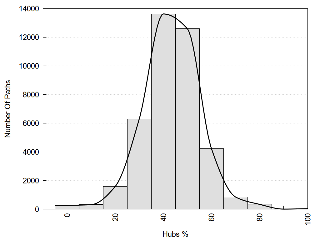 Hub1?, Hub2?: "Yes" if the corresponding node has more than 3 links, otherwise "No".