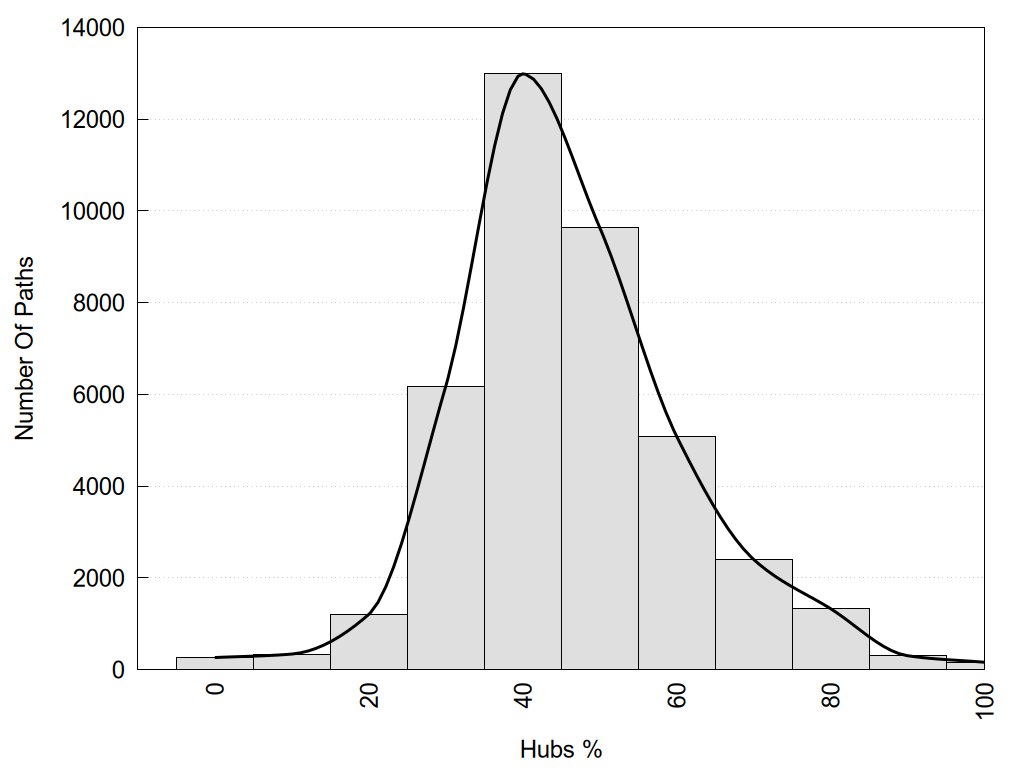 Hub1?, Hub2?: "Yes" if the corresponding node has more than 3 links, otherwise "No".