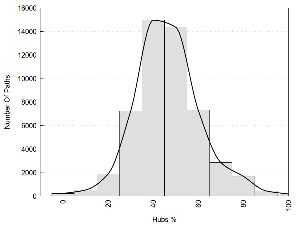 Hub1?, Hub2?: "Yes" if the corresponding node has more than 3 links, otherwise "No".