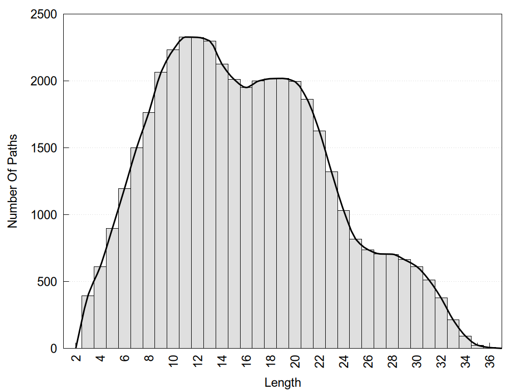histograms of path distribution according to several parameters