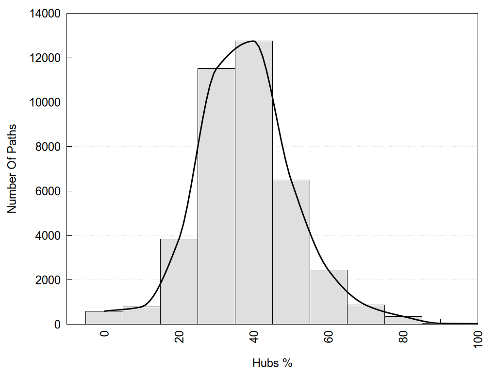 Hub1?, Hub2?: "Yes" if the corresponding node has more than 3 links, otherwise "No".