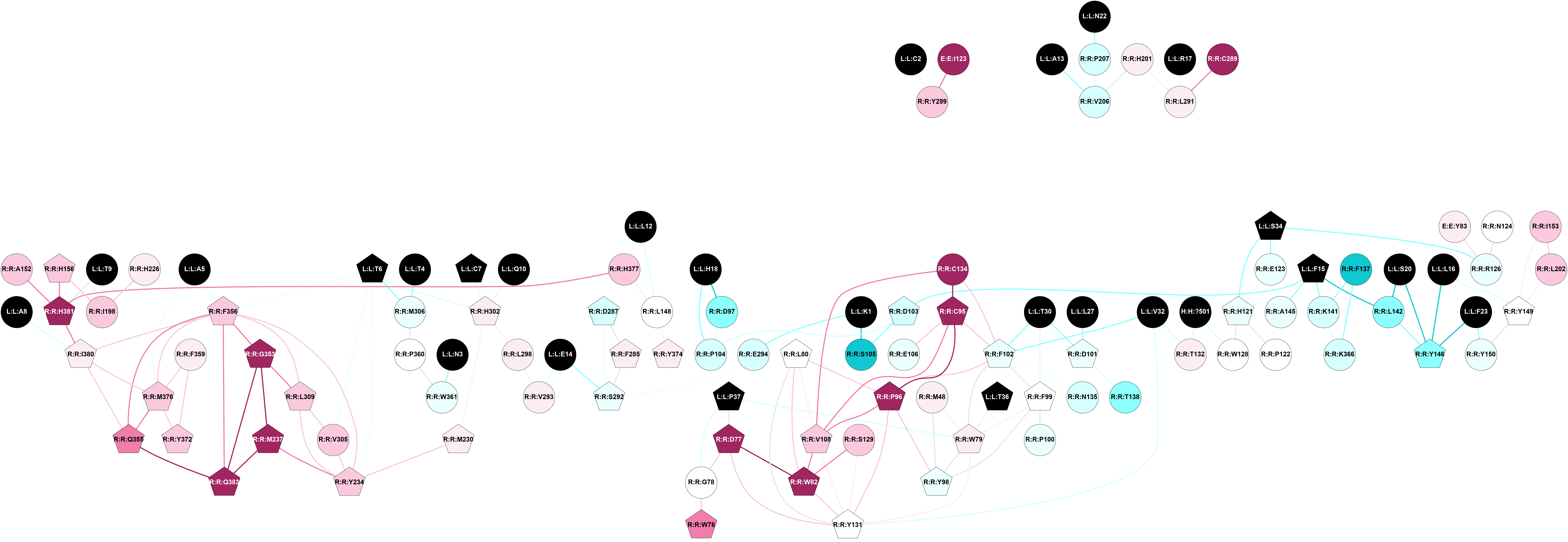 Links and nodes colored according to ConSurf Conservation Grade (See documentation): n/a 1 2 3 4 5 6 7 8 9 |