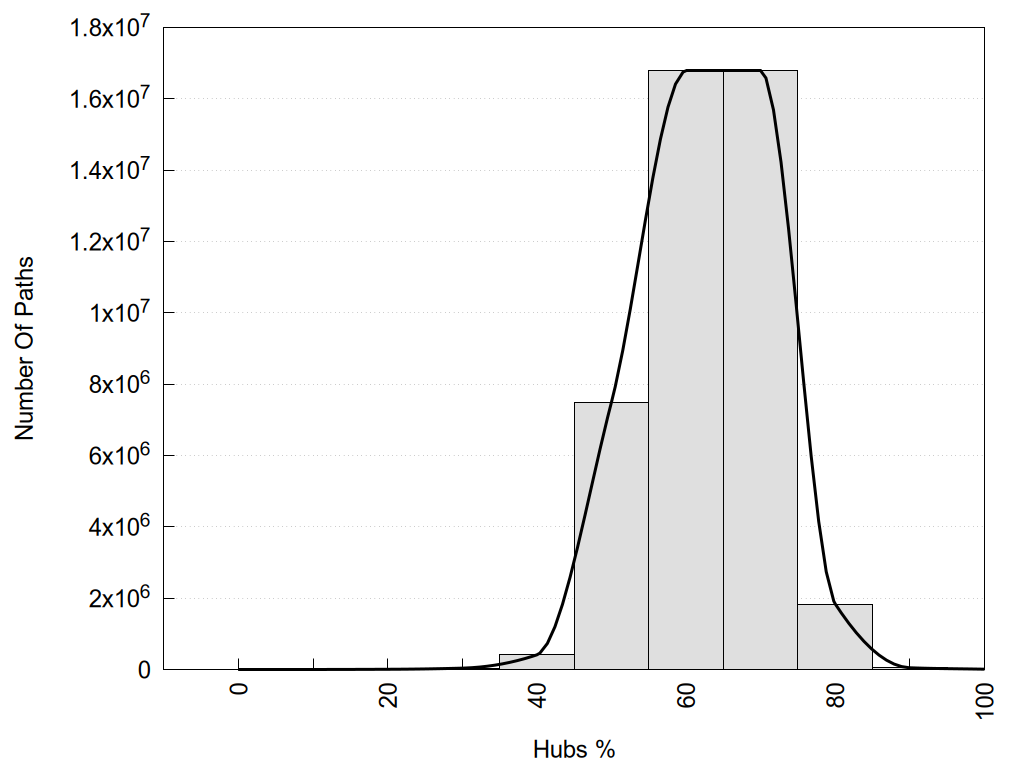 Hub1?, Hub2?: "Yes" if the corresponding node has more than 3 links, otherwise "No".