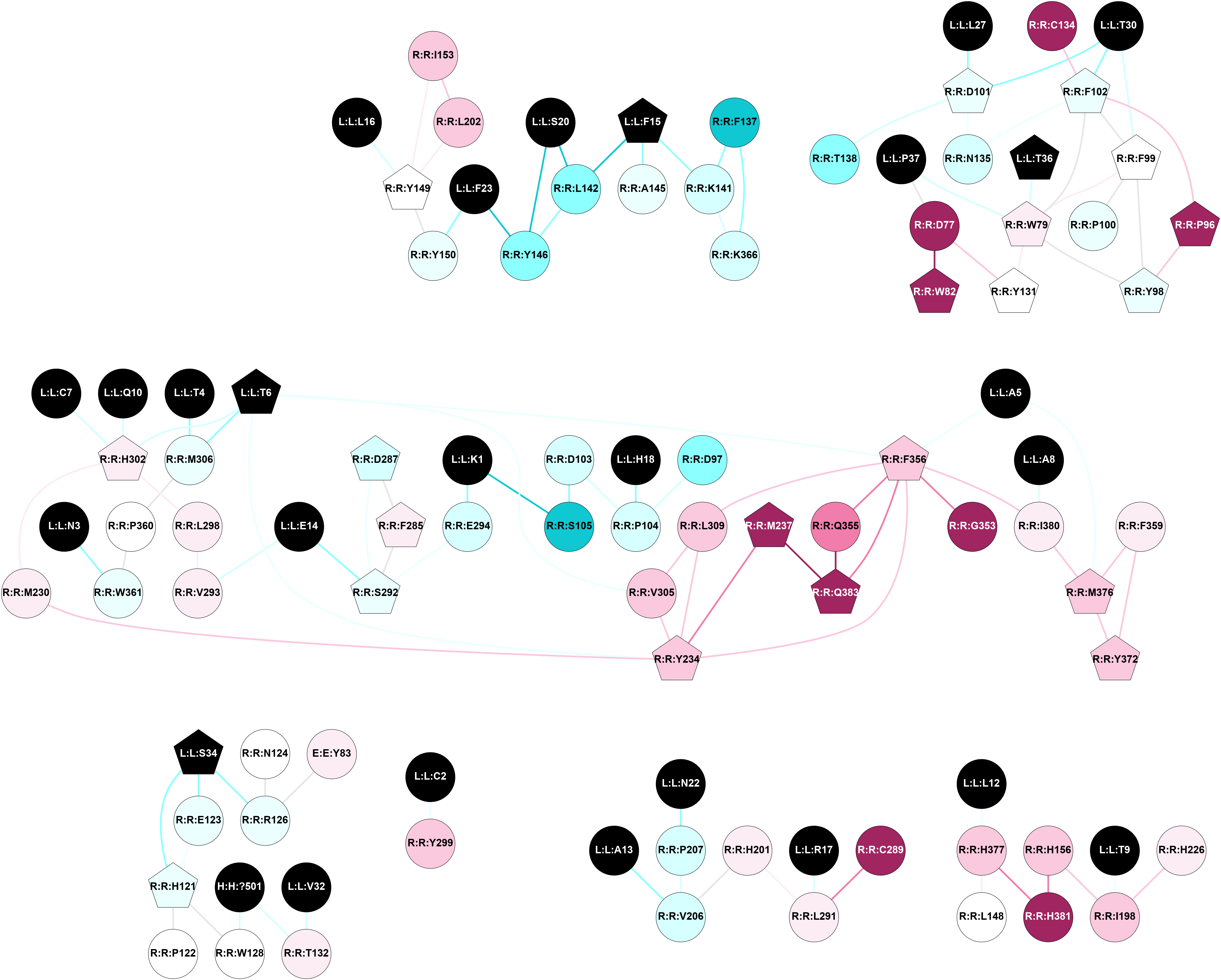 Links and nodes colored according to ConSurf Conservation Grade (See documentation): n/a 1 2 3 4 5 6 7 8 9 |