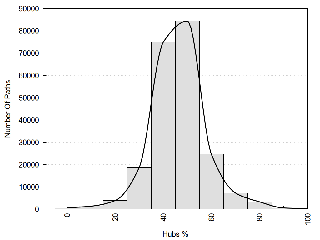 Hub1?, Hub2?: "Yes" if the corresponding node has more than 3 links, otherwise "No".