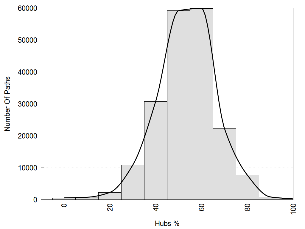 Hub1?, Hub2?: "Yes" if the corresponding node has more than 3 links, otherwise "No".