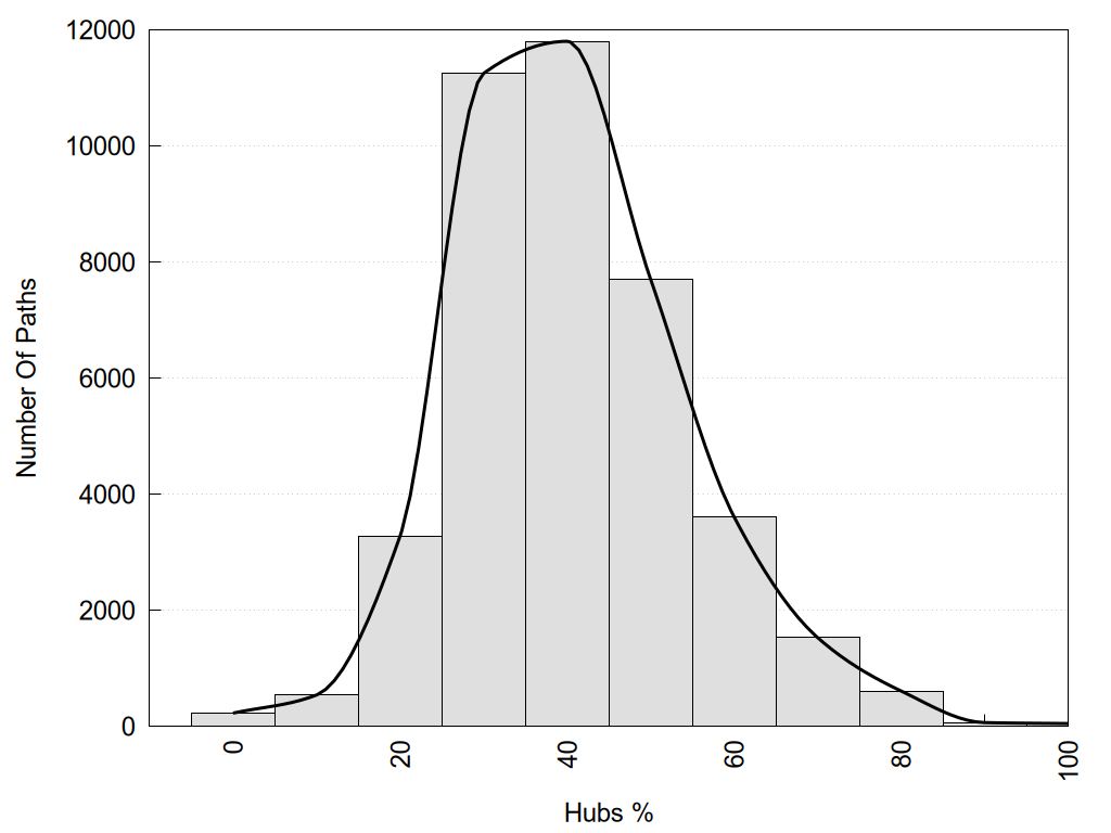 Hub1?, Hub2?: "Yes" if the corresponding node has more than 3 links, otherwise "No".