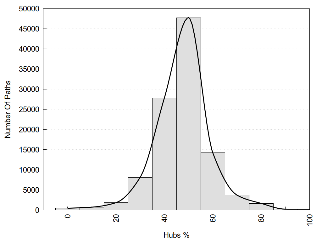 Hub1?, Hub2?: "Yes" if the corresponding node has more than 3 links, otherwise "No".