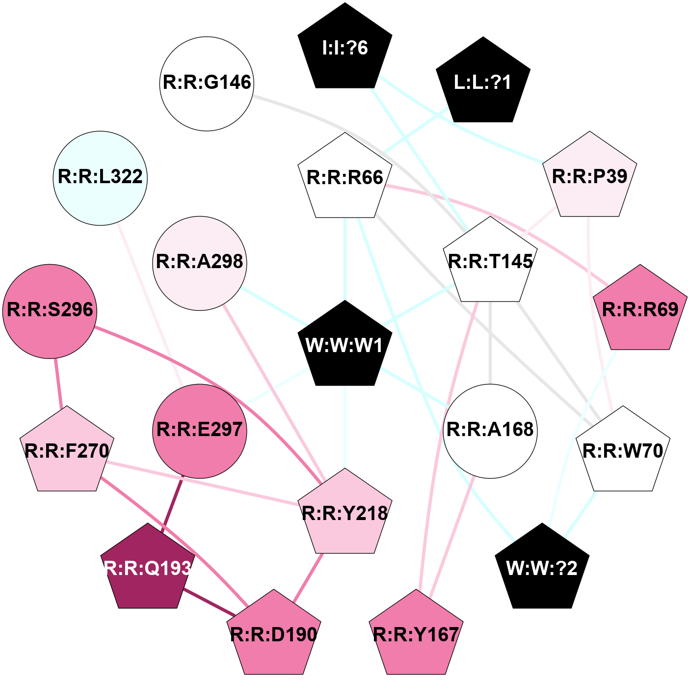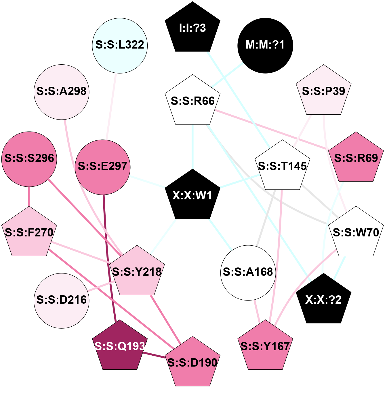 Links and nodes colored according to ConSurf Conservation Grade (See documentation): n/a 1 2 3 4 5 6 7 8 9 |