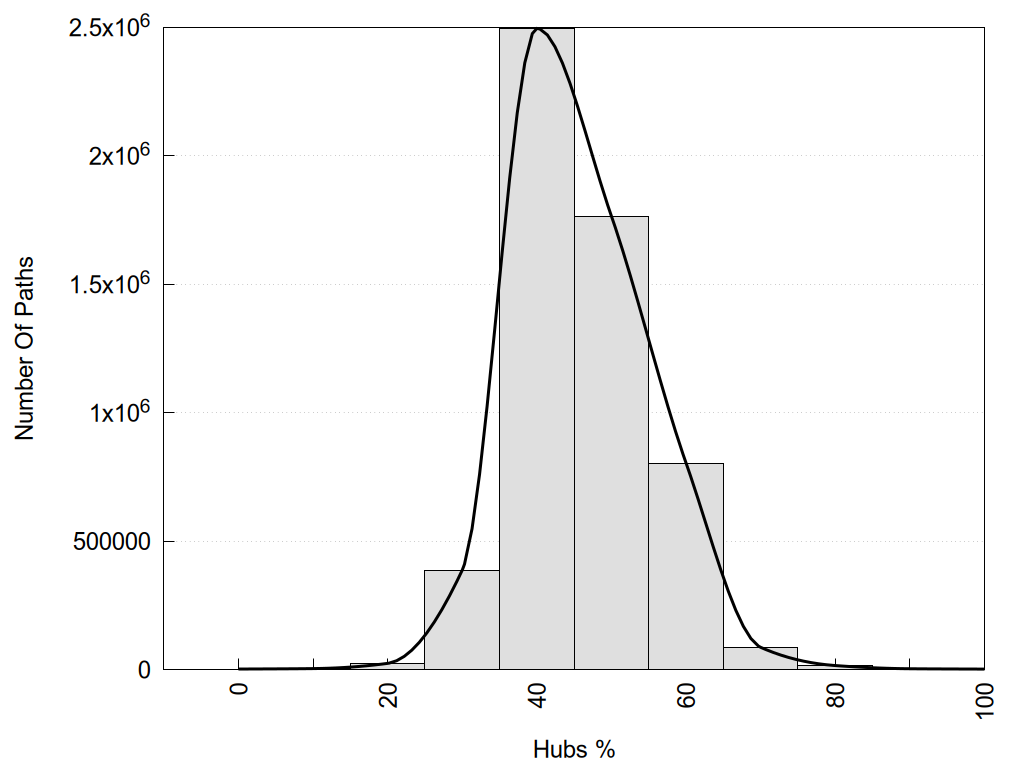 Hub1?, Hub2?: "Yes" if the corresponding node has more than 3 links, otherwise "No".