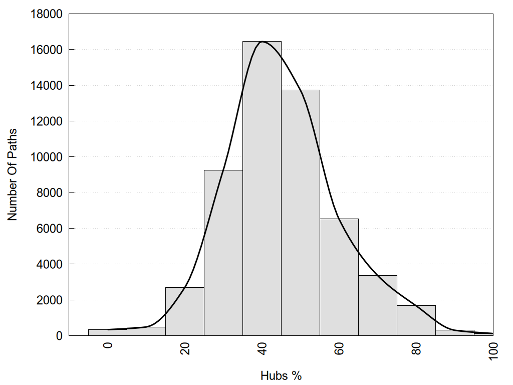 Hub1?, Hub2?: "Yes" if the corresponding node has more than 3 links, otherwise "No".