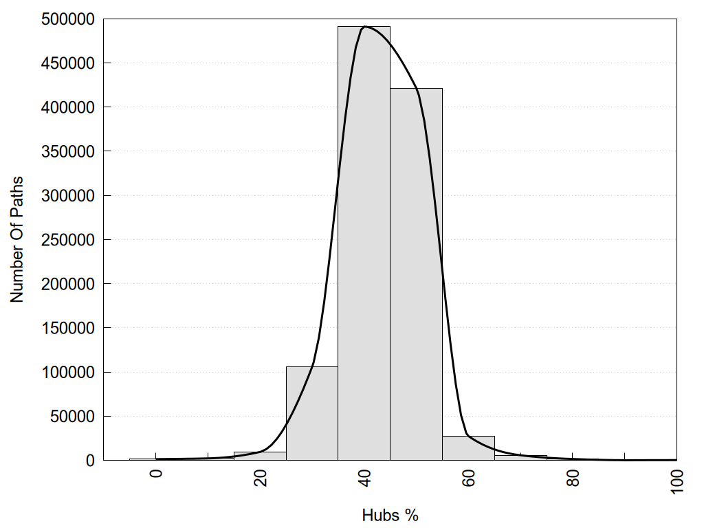 Hub1?, Hub2?: "Yes" if the corresponding node has more than 3 links, otherwise "No".