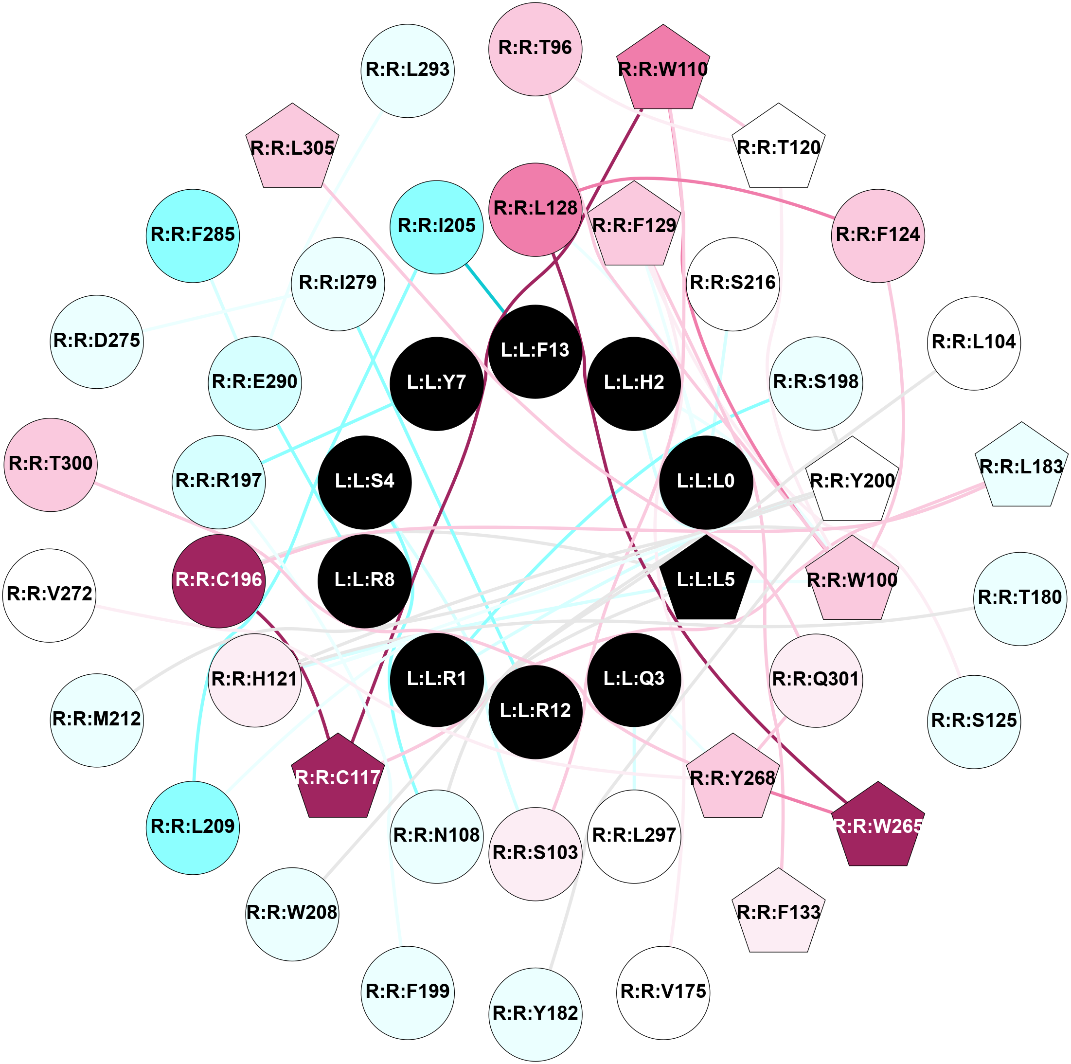 Show 58.33 Single 6JOD Angiotensin II 6JOD-AT2 -Angiotensin II Show 56.52 Single 5XJM (Sar1,Ile8)-Angiotensin II 5XJM-AT2 -(Sar1,Ile8)-Angiotensin II Show 53.85 Single 7SK4 CXCL12_LRHQ 7SK4-ACKR3-CXCL12_LRHQ Show 50.00 Single 9KFI Relaxin-3 9KFI-RXFP3-Relaxin-3-Gi2/β1/γ2 Show 48.15 Consensus gi_peptide Orthosteric Ligand gi_cck gi_apelin gi_compl-pept gi_endothelin gi_formylpeptide gi_galanin gi_ghrelin gi_npy gi_neurotensin gi_opioid gi_orexin gi_relaxin gi_somatostatin Show 48.00 Single 8XIR Pasireotide 8XIR-SST3-Pasireotide-chim(NtGi1-Gs-CtGi1)/β1/γ2 Show 48.00 Consensus angiotensin_on Orthosteric Ligand at1_on Show 48.00 Consensus at1_on Orthosteric Ligand 7F6G-AT1 -SAR1-AngII-Gq/β1/γ2 Show 46.43 Consensus peptide_on Orthosteric Ligand cck_on angiotensin_on apelin_on bombesin_on bradykinin_on compl-peptide_on endothelin_on formylpeptide_on galanin_on ghrelin_on kisspeptin_on melanocortin_on motilin_on neuromedin-u_on npy_on neurotensin_on opioid_on orexin_on relaxin_on somatostatin_on tachykinin_on trh_on vasop-oxy_on Show 46.43 Consensus peptide_on_gp Orthosteric Ligand cck_on_gp angiotensin_on_gp apelin_on_gp bombesin_on_gp bradykinin_on_gp compl-peptide_on_gp endothelin_on_gp formylpeptide_on_gp galanin_on_gp ghrelin_on_gp kisspeptin_on_gp melanocortin_on_gp motilin_on_gp neuromedin-u_on_gp npy_on_gp neurotensin_on_gp opioid_on_gp orexin_on_gp relaxin_on_gp somatostatin_on_gp tachykinin_on_gp trh_on_gp vasop-oxy_on_gp Show 46.15 Single 7F6G SAR1-AngII 7F6G-AT1 -SAR1-AngII-Gq/β1/γ2 Show 46.15 Consensus angiotensin_on_gp Orthosteric Ligand at1_on_gp Show 46.15 Consensus at1_on_gp Orthosteric Ligand 7F6G-AT1 -SAR1-AngII-Gq/β1/γ2 Show 46.15 Consensus gi_class-a Orthosteric Ligand gi_peptide gi_sensory gi_alicarboxylic gi_amine gi_lipid gi_nucleotide gi_protein Show 46.15 Consensus gq_angiotensin Orthosteric Ligand 7F6G-AT1 -SAR1-AngII-Gq/β1/γ2 Show 46.15 Consensus peptide_offon_gp Orthosteric Ligand peptide_on_gp peptide_off Show 46.15 Consensus protein_offon Orthosteric Ligand protein_off protein_on Show 46.15 Consensus protein_offon_gp Orthosteric Ligand protein_on_gp protein_off Show 46.15 Consensus protein_on Orthosteric Ligand chemokine_on chemerin_on Show 45.83 Single 8ZSP LSD 8ZSP-TA1-LSD-chim(NtGi1L-Gs-CtGq)/β1/γ2 Show 45.45 Single 6C1R PMX53 6C1R-C5a1 -PMX53-Avacopan; Na Show 45.45 Single 6OS0 Angiotensinogen 6OS0-AT1 -Angiotensinogen Show 45.45 Single 8IA8 E7 peptide 8IA8-C3aB -E7 peptide-Gi1/β1/γ2 Show 45.45 Single 9L3W Retinoic acid receptor responder protein 2 9L3W-CML1-Retinoic acid receptor responder protein 2-Gi1/β1/γ2 Show 45.00 Single 7YAC Paltusotine 7YAC-SST2-Paltusotine-Gi1/β1/γ2 Show 44.83 Single 6IGL IRL1620 6IGL-ETB -IRL1620 Show 44.44 Consensus chemokine_on_gp Orthosteric Ligand ccr_on_gp cxcr_on_gp Show 44.44 Consensus gi_chemokine Orthosteric Ligand 6WWZ-CCR6-CCL20-Go/β1/γ2 8HNK-CXCR3-CXCL11-Gi1/β1/γ2 8K3Z-CXCR4-CXCL12-Gi1/β1/γ1 8IC0-CXCR1-Interleukin-8-Gi1/β1/γ2 6LFM-CXCR2-Interleukin-8-Gi1/β1/γ2 8KFX-CCR8-LMD-009-Gi1/β1/γ2 7F1Q-CCR5-MIP-1a-Gi1/β1/γ2 8HNL-CXCR3-PS372424-Gi1/β1/γ2 8KFY-CCR8-ZK-756326-Gi1/β1/γ2 7O7F-CCR5-6P4-CCL5-Gi1/β1/γ1 8U1U-CCR8-CCL1-Gi1/β1/γ2 7VLA-CCR1-CCL15(27-92)-Gi1/β1/γ2 7XA3-CCR2-CCL2-Gi1/β1/γ2 Show 44.00 Single 6DO1 Angiotensin-like peptide S1I8 6DO1-AT1 -Angiotensin-like peptide S1I8 Show 44.00 Single 7C6A (Sar1,Ile8)-Angiotensin II 7C6A-AT2 -(Sar1,Ile8)-Angiotensin II Show 44.00 Consensus formylpeptide_on_gp Orthosteric Ligand fpr2-alx_on_gp fpr1-alx_on_gp Show 44.00 Consensus gq_class-a Orthosteric Ligand gq_peptide gq_amine gq_nucleotide Show 44.00 Consensus sst4_on Orthosteric Ligand 7XMS-SST4-Somatostatin-14-Gi1/β1/γ2 7XMT-SST4-J-2156-Gi1/β1/γ2 Show 44.00 Consensus sst4_on_gp Orthosteric Ligand 7XMS-SST4-Somatostatin-14-Gi1/β1/γ2 7XMT-SST4-J-2156-Gi1/β1/γ2 Show 43.48 Single 7Y65 C5a peptide 7Y65-C5a1 -C5a peptide-Gi1/β1/γ2 Show 43.48 Single 8I95 EP54 8I95-C3aB -EP54-Go/β1/γ2 Show 43.48 Consensus c3a_on_gp Orthosteric Ligand 8HK2-C3aB -C3a anaphylatoxin-Gi1/β1/γ2 8IA8-C3aB -E7 peptide-Gi1/β1/γ2 Show 43.48 Consensus class-a_on Orthosteric Ligand sensory_on alicarboxylic_on amine_on lipid_on nucleotide_on peptide_on protein_on Show 43.33 Single 6IGK Endothelin-3 6IGK-ETB -Endothelin-3 Show 42.86 Single 8XVE BQ3020 8XVE-ETB -BQ3020-chim(Gs-CtGq)/β1/γ2 Show 42.86 Consensus gi_protein Orthosteric Ligand gi_chemokine gi_chemerin Show 42.86 Consensus protein_on_gp Orthosteric Ligand chemokine_on_gp chemerin_on_gp Show 42.86 Consensus rxfp4_on Orthosteric Ligand 7YK7-RXFP4-DC591053-Gi2/β1/γ2 7YJ4-RXFP4-INSL5-Gi2/β1/γ2 7YK6-RXFP4-PubChem 138319674-Gi2/β1/γ2 Show 42.86 Consensus rxfp4_on_gp Orthosteric Ligand 7YK7-RXFP4-DC591053-Gi2/β1/γ2 7YJ4-RXFP4-INSL5-Gi2/β1/γ2 7YK6-RXFP4-PubChem 138319674-Gi2/β1/γ2 Show 42.31 Consensus peptide_offon Orthosteric Ligand peptide_off peptide_on Show 41.94 Single 7SK6 CXCL12_LRHQ 7SK6-ACKR3-CXCL12_LRHQ Show 41.67 Single 6C1Q PMX53 6C1Q-C5a1 -PMX53-NDT9513727 Show 41.67 Single 7F2O Bradykinin 7F2O-BK2 -Bradykinin-chim(NtGi1-Gs-CtGq)/β1/γ2 Show 41.67 Single 8JLR A77636 8JLR-TA1-A77636-chim(NtGi1-Gs)/β1/γ2 Show 41.67 Consensus dop_on Orthosteric Ligand 8F7S-δ-Deltorphin-Gi1/β1/γ2 Show 41.67 Consensus formylpeptide_on Orthosteric Ligand fpr2-alx_on fpr1-alx_on Show 41.38 Single 8XWP Endothelin-1 8XWP-ETB -Endothelin-1-Gi1/β1/γ2 Show 41.38 Single 9KDF RES-701-3 9KDF-ETB -RES-701-3 Show 41.38 Consensus gq_peptide Orthosteric Ligand gq_cck gq_kisspeptin gq_bradykinin gq_bombesin gq_angiotensin Show 40.91 Single 7XTQ R399 7XTQ-GPBA-R399-Gs/β1/γ2 Show 40.91 Single 8IHH LUF6283 8IHH-HCA2 -LUF6283-Gi1/β1/γ2 Show 40.91 Consensus gi_relaxin Orthosteric Ligand 7YK7-RXFP4-DC591053-Gi2/β1/γ2 7YJ4-RXFP4-INSL5-Gi2/β1/γ2 7YK6-RXFP4-PubChem 138319674-Gi2/β1/γ2 Show 40.91 Consensus relaxin_on Orthosteric Ligand rxfp4_on Show 40.91 Consensus relaxin_on_gp Orthosteric Ligand rxfp4_on_gp Show 40.74 Single 8ZBI Somatostatin-14 8ZBI-SS