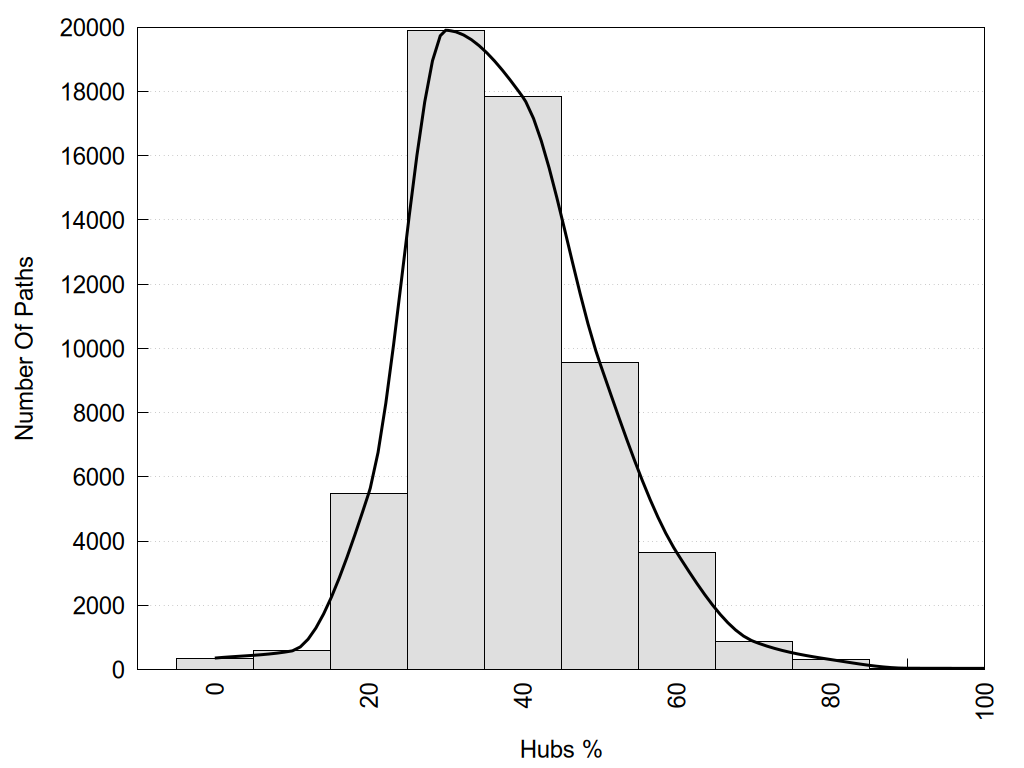 Hub1?, Hub2?: "Yes" if the corresponding node has more than 3 links, otherwise "No".