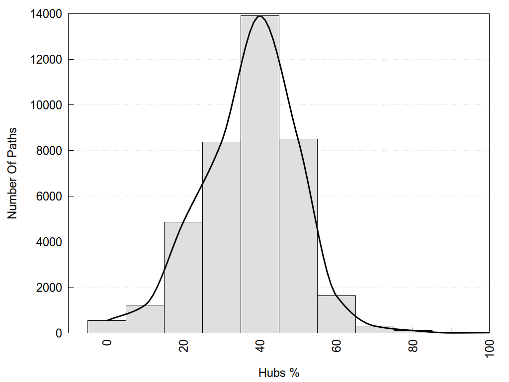 Hub1?, Hub2?: "Yes" if the corresponding node has more than 3 links, otherwise "No".