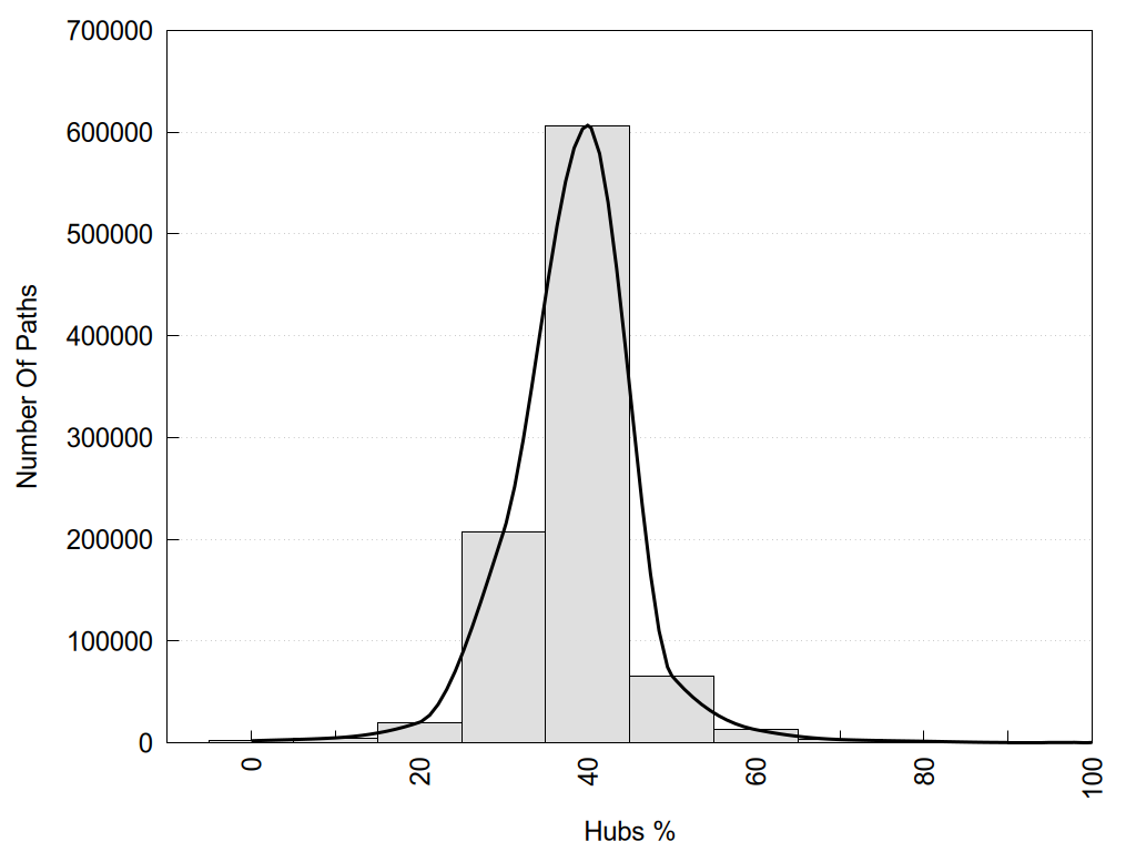 Hub1?, Hub2?: "Yes" if the corresponding node has more than 3 links, otherwise "No".