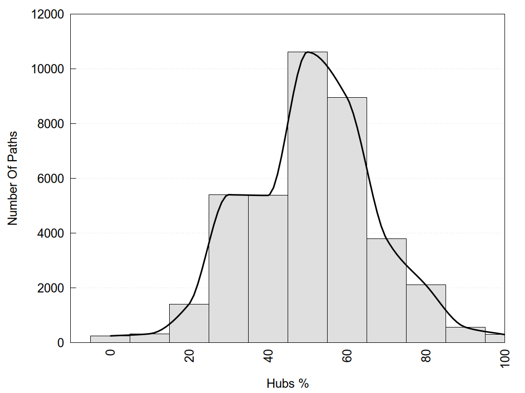 Hub1?, Hub2?: "Yes" if the corresponding node has more than 3 links, otherwise "No".