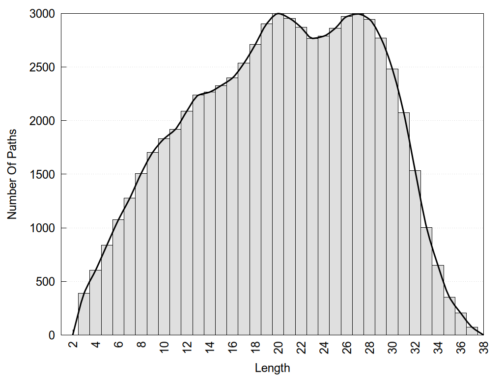 histograms of path distribution according to several parameters