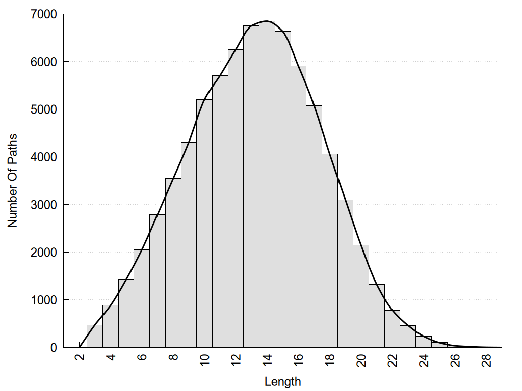 histograms of path distribution according to several parameters
