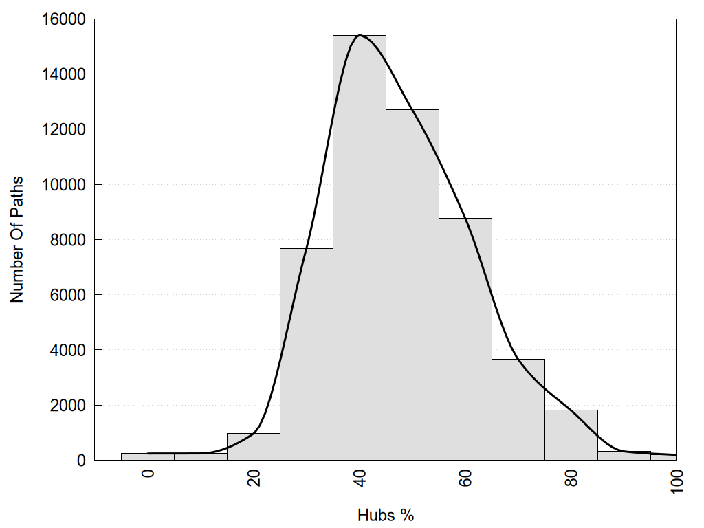 Hub1?, Hub2?: "Yes" if the corresponding node has more than 3 links, otherwise "No".