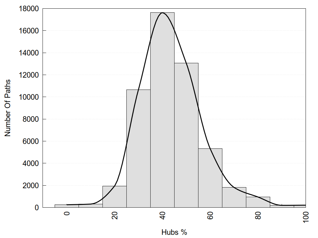 Hub1?, Hub2?: "Yes" if the corresponding node has more than 3 links, otherwise "No".
