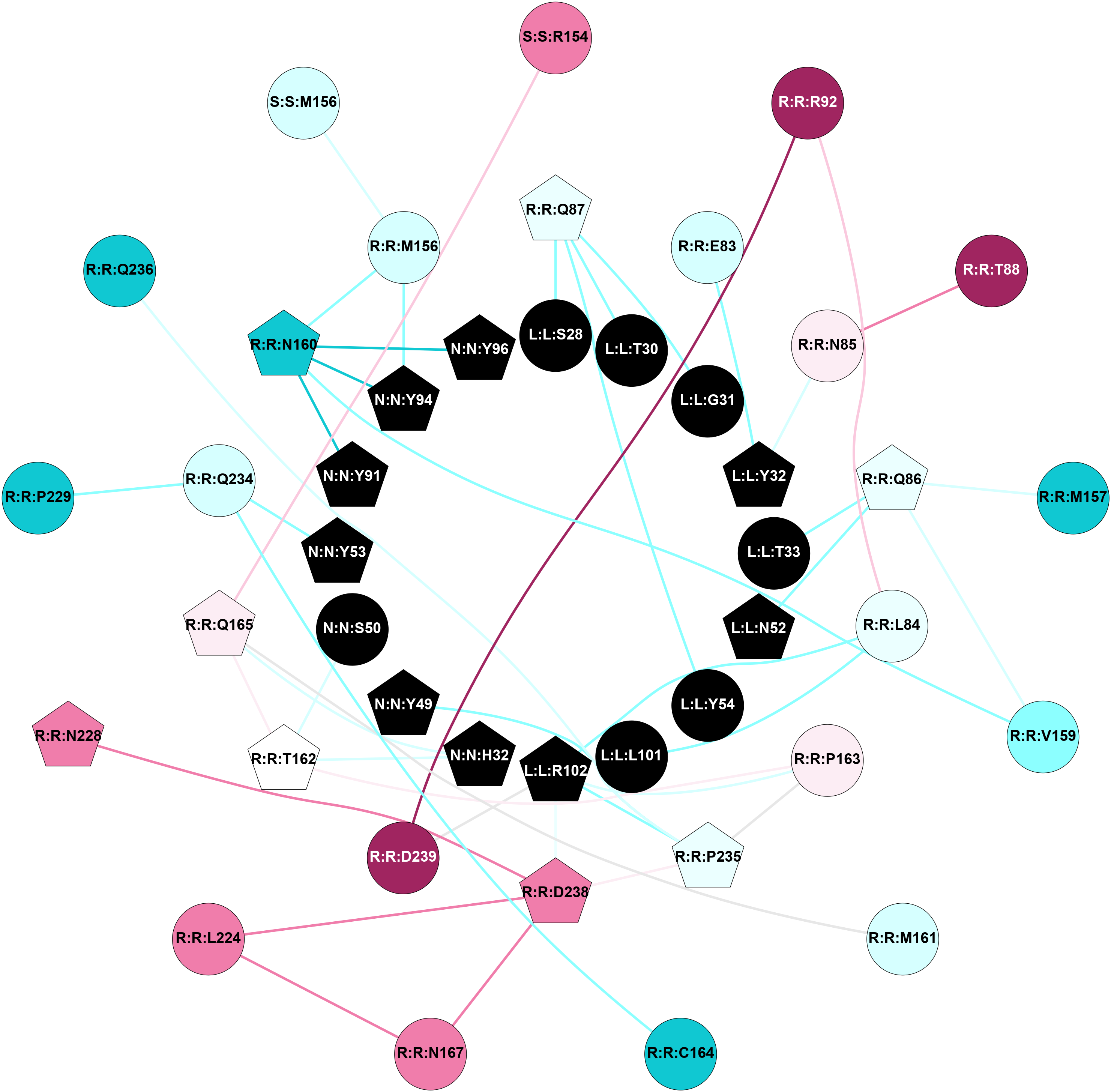 Show 29.41 Single 7SK8 CXCL12 7SK8-ACKR3-CXCL12-CCX662 Show 27.78 Single 8TH4 AT118-L Nanobody 8TH4-AT1 -Losartan-AT118-L Nanobody Show 26.67 Single 4O9R Cyclopamine 4O9R-SMO-Cyclopamine Show 26.32 Single 7L0P Neurotensin 7L0P-NTS1 -Neurotensin-Gi1/β1/γ1 Show 26.32 Single 7L0Q Neurotensin 7L0Q-NTS1 -Neurotensin-Gi1/β1/γ1 Show 26.32 Single 7SK7 CXCL12 7SK7-ACKR3-CXCL12-CCX662 Show 25.00 Single 3VG9 ZM-241385 3VG9-A2A -ZM-241385-Antibody Show 25.00 Single 4BWB Neurotensin 4BWB-NTS1 -Neurotensin Show 25.00 Single 4QIN SAG1.5 4QIN-SMO-SAG1.5 Show 25.00 Single 6O3C SAG21k 6O3C-SMO-SAG21k-Cholesterol Show 25.00 Single 6WWZ CCL20 6WWZ-CCR6-CCL20-Go/β1/γ2 Show 25.00 Single 8J6D EP141 8J6D-C3aB -EP141-Go/β1/γ2 Show 25.00 Single 8JPB Neurotensin-(8-13) 8JPB-NTS1 -Neurotensin-(8-13)-SBI-553; GDP; Mg-Gq; GRK2 Show 25.00 Consensus ccr6_on Orthosteric Ligand 6WWZ-CCR6-CCL20-Go/β1/γ2 Show 25.00 Consensus ccr6_on_gp Orthosteric Ligand 6WWZ-CCR6-CCL20-Go/β1/γ2 Show 25.00 Consensus ccr_on Orthosteric Ligand ccr6_on ccr8_on ccr2_on ccr1_on ccr5_on Show 24.00 Single 8XZJ WN353 8XZJ-Apelin-WN353-Gi1/β1/γ2 Show 23.81 Single 8FN0 Neurotensin/Neuromedin-N 8FN0-NTS1 -Neurotensin/Neuromedin-N-SBI-553-chim(NtGi1-Go)/β1/γ2 Show 23.81 Single 8K4O CXCL1 8K4O-KSHV-CXCL1-Gi1/β1/γ1 Show 23.81 Single 8XWF CXCL3 8XWF-CXCR2-CXCL3 Show 23.81 Single 8XWV CXCL1 8XWV-CXCR2-CXCL1-Go/β1/γ2 Show 23.53 Single 5IU4 ZM-241385 5IU4-A2A -ZM-241385-Na Show 23.53 Single 5IUB Q27456344 5IUB-A2A -Q27456344-Na Show 23.53 Single 5K2C ZM-241385 5K2C-A2A -ZM-241385-Na Show 23.53 Single 5NM4 ZM-241385 5NM4-A2A -ZM-241385-Na Show 23.53 Single 6U1N LY2119620 6U1N-M2 -LY2119620-Arrestin2 Show 23.53 Single 6XBL SAG 6XBL-SMO-SAG-Cholesterol-Gi1/β1/γ2 Show 23.53 Single 7T32 ZM-241385 7T32-A2A -ZM-241385 Show 23.53 Single 7T94 LY2119620 7T94-M2 -Acetylcholine-LY2119620-chim(NtGi1-Go)/β1/γ2 Show 23.53 Single 7ZI0 SAG 7ZI0-SMO-SAG-Cholesterol Show 23.53 Single 9K0K UTP 9K0K-P2Y4 -UTP-chim(NtGi1-Gs-CtGq)/β1/γ2 Show 23.33 Single 7SK6 CXCL12_LRHQ 7SK6-ACKR3-CXCL12_LRHQ Show 23.08 Single 8WWM MCH 8WWM-MCH1-MCH-Gi1/β1/γ2 Show 23.08 Consensus ccr_on_gp Orthosteric Ligand ccr6_on_gp ccr8_on_gp ccr2_on_gp ccr1_on_gp ccr5_on_gp Show 22.73 Single 6KNM JN241-9 6KNM-Apelin-JN241-9 Show 22.73 Single 6OS9 JMV449 6OS9-NTS1 -JMV449-Gi1/β1/γ2 Show 22.73 Single 8XQJ JN241 8XQJ-Apelin-JN241 Show 22.73 Single 8XX6 CXCL8 8XX6-CXCR2-CXCL8-Go/β1/γ2 Show 22.22 Single 4EIY ZM-241385 4EIY-A2A -ZM-241385-Na Show 22.22 Single 5IU8 Q27456347 5IU8-A2A -Q27456347-Na Show 22.22 Single 5OLG ZM-241385 5OLG-A2A -ZM-241385-Na Show 22.22 Single 5T04 Neurotensin 5T04-NTS1 -Neurotensin Show 22.22 Single 6LPJ ZM-241385 6LPJ-A2A -ZM-241385-Na Show 22.22 Single 6LPK ZM-241385 6LPK-A2A -ZM-241385-Na Show 22.22 Single 6Z4V NTS8-13 6Z4V-NTS1 -NTS8-13 Show 22.22 Single 7PYR PSB-2115 7PYR-A2A -PSB-2115 Show 22.22 Single 7SK3 CXCL12 7SK3-ACKR3-CXCL12 Show 22.22 Single 7SK4 CXCL12_LRHQ 7SK4-ACKR3-CXCL12_LRHQ Show 22.22 Single 7YU4 ONO-0740556 7YU4-LPA1 -ONO-0740556 Show 22.22 Single 8TH3 AT118-H Nanobody 8TH3-AT1 -AT118-H Nanobody Show 21.74 Single 7NA7 Ghrelin-27 7NA7-Ghrelin-Ghrelin-27-Gi1/β1/γ2 Show 21.74 Single 7VLA CCL15(27-92) 7VLA-CCR1-CCL15(27-92)-Gi1/β1/γ2 Show 21.74 Single 8XWN CXCL8 8XWN-CXCR2-CXCL8 Show 21.74 Consensus ccr1_on Orthosteric Ligand 7VLA-CCR1-CCL15(27-92)-Gi1/β1/γ2 Show 21.74 Consensus ccr1_on_gp Orthosteric Ligand 7VLA-CCR1-CCL15(27-92)-Gi1/β1/γ2 Show 21.74 Consensus chemokine_on Orthosteric Ligand ccr_on cxcr_on Show 21.43 Single 8W8X Beta-MSH 8W8X-MC3 -β-MSH-Ca-Gs/β1/γ2 Show 21.05 Single 5IUA Q27456348 5IUA-A2A -Q27456348-Na Show 21.05 Single 5N2R PSB-36 5N2R-A2A -PSB-36-Na Show 21.05 Single 5NM2 ZM-241385 5NM2-A2A -ZM-241385-Na Show 21.05 Single 6LPL ZM-241385 6LPL-A2A -ZM-241385-Na Show 21.05 Single 6S0Q ZM-241385 6S0Q-A2A -ZM-241385 Show 21.05 Single 6WQA ZM-241385 6WQA-A2A -ZM-241385-Na Show 21.05 Single 7RM5 ZM-241385 7RM5-A2A -ZM-241385-Na Show 21.05 Single 7YU3 ONO-0740556 7YU3-LPA1 -ONO-0740556-Gi1/β1/γ2 Show 21.05 Single 7YU6 ONO-0740556 7YU6-LPA1 -ONO-0740556-Gi1/β1/γ2 Show 21.05 Single 8FYN ZM-241385 8FYN-A2A -ZM-241385-Na Show 21.05 Single 8ZYT Neurotensin peptide 8-13 8ZYT-NTS1 -Neurotensin peptide 8-13-SBI-553-Arrestin2 Show 21.05 Consensus adenosine_off Orthosteric Ligand a1_off a2_off Show 20.83 Single 5XJM (Sar1,Ile8)-Angiotensin II 5XJM-AT2 -(Sar1,Ile8)-Angiotensin II Show 20.83 Single 7C6A (Sar1,Ile8)-Angiotensin II 7C6A-AT2 -(Sar1,Ile8)-Angiotensin II Show 20.83 Single 7F1Q MIP-1a 7F1Q-CCR5-MIP-1a-Gi1/β1/γ2 Show 20.83 Single 7SK5 CXCL12 7SK5-ACKR3-CXCL12 Show 20.83 Single 7XNA CYN154806 7XNA-SST2-CYN154806 Show 20.83 Single 8WSS Pro-MCH 8WSS-MCH1-Pro-MCH-Gi1/β1/γ1 Show 20.83 Single 8Z7J Agonistic antibody 8Z7J-Apelin-Agonistic antibody-Gi1/β1/γ2 Show 20.83 Consensus compl-peptide_on Orthosteric Ligand c5a1_on c3a_on Show 20.83 Consensus gi_ghrelin Orthosteric Ligand 7NA7-Ghrelin-Ghrelin-27-Gi1/β1/γ2 7NA8-Ghrelin-PubChem 178024-Gi1/β1/γ2 Show 20.83 Consensus sst2_off Orthosteric Ligand 7XNA-SST2-CYN154806 Show 20.69 Single 8WWN MCH 8WWN-MCH1-MCH-Gi1/β1/γ2 Show 20.69 Consensus gs_melanocortin Orthosteric Ligand 7F4H-MC1 -Afamelanotide-chim(NtGi1-Gs)/β1/γ2 7F54-MC4 -Afamelanotide-Gs/β1/γ2 7F4D-MC1 -α-MSH-chim(NtGi1-Gs)/β1/γ2 8INR-MC5 -α-MSH-Ca-chim(NtGi1-Gs)/β1/γ2 7F53-MC4 -α-MSH-Gs/β1/γ2 7F55-MC4 -Bremelanotide-Gs/β1/γ2 8GY7-MC2 -Corticotropin-Ca-chim(NtGi1-Gs)/β1/γ2; MRAP1 8IOC-MC3 -γ-MSH-Ca-chim(NtGi1-Gs)/β1/γ2 8IOD-MC5 -PG-901-Ca-chim(NtGi1-Gs)/β1/γ2 7AUE-MC4 -Setmelanotide-chim(NtGi1L-Gs)/β1/γ2 7F4I-MC1 -SHU9119-chim(NtGi1-Gs)/β1/γ2 7F58-MC4 -THIQ-Gs/β1/γ2 Show 20.00 Single 3ZEV Neurotensin 3ZEV-NTS1 -Neurotensin Show 20.00 Single 4BV0 Neurotensin 4BV0-NTS1 -Neurotensin Show 20.00 Single 4XNW MRS2500 4XNW-P2Y1 -MRS2500 Show 20.00 Single 6LW5 WKYMVm 6LW5-FPR2-ALX-WKYMVm Show 20.00 Single 6OS1 TRV026 6OS1-AT1 -TRV026 Show 20.00 Single 7F1T MIP-1a 7F1T-CCR5-MIP-1a Show
