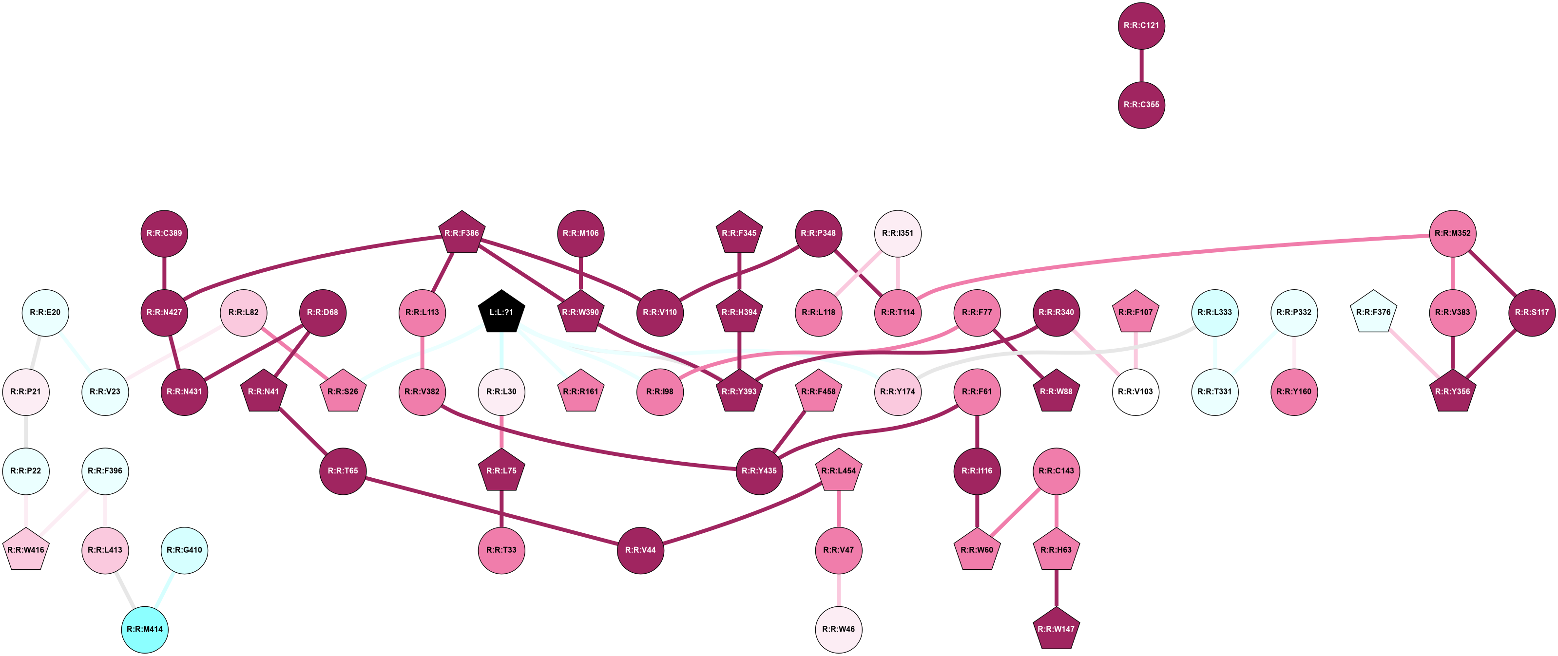 Show 88.24 Single 9IPV JR14a 9IPV-C3aB -JR14a-Gi1/β1/γ2 Show 63.16 Single 8ZWG JR14a 8ZWG-C3aB -JR14a-Gi1/β1/γ2 Show 61.11 Single 8ZWF JR14a 8ZWF-C3aB -JR14a Show 56.25 Single 7XRR Lemborexant 7XRR-OX2 -Lemborexant Show 55.00 Single 5UNG PubChem 15780052 5UNG-AT2 -PubChem 15780052 Show 52.63 Single 7M8W 15r-Methyl-Prostaglandin D2 7M8W-DP2 -15r-Methyl-Prostaglandin D2-Na Show 52.63 Single 7TUY GSK682753A 7TUY-GPR183-GSK682753A Show 52.38 Single 8F7R Endomorphin 8F7R-μ-Endomorphin-Gi1/β1/γ2 Show 50.00 Single 5UNF PubChem 15780052 5UNF-AT2 -PubChem 15780052 Show 50.00 Single 5UNH PubChem 126456406 5UNH-AT2 -PubChem 126456406 Show 50.00 Single 8I9A EP54 8I9A-C3aB -EP54-chim(NtGi1-Gs-CtGq)/β1/γ2 Show 50.00 Single 8IA8 E7 peptide 8IA8-C3aB -E7 peptide-Gi1/β1/γ2 Show 50.00 Single 8JJL Olodaterol 8JJL-β2 -Olodaterol Show 50.00 Single 9HB3 Mambaquaretin-1 9HB3-V2 -Mambaquaretin-1 Show 50.00 Single 9M4Q Doxazosin 9M4Q-Alpha1A-Doxazosin Show 50.00 Consensus c3a_on Orthosteric Ligand 8HK2-C3aB -C3a anaphylatoxin-Gi1/β1/γ2 8IA8-C3aB -E7 peptide-Gi1/β1/γ2 Show 47.62 Single 8I95 EP54 8I95-C3aB -EP54-Go/β1/γ2 Show 47.62 Single 9EAI Losartan 9EAI-AT1 -Losartan-Nanobody AT209 Show 47.62 Consensus c3a_on_gp Orthosteric Ligand 8HK2-C3aB -C3a anaphylatoxin-Gi1/β1/γ2 8IA8-C3aB -E7 peptide-Gi1/β1/γ2 Show 47.37 Single 5WQC EMPA 5WQC-OX2 -EMPA Show 47.37 Single 6TP6 Filorexant 6TP6-OX1 -Filorexant Show 47.37 Single 8DZQ momSalB 8DZQ-κ-momSalB-Go/β1/γ2 Show 47.37 Single 8HNL PS372424 8HNL-CXCR3-PS372424-Gi1/β1/γ2 Show 47.37 Single 8KFX LMD-009 8KFX-CCR8-LMD-009-Gi1/β1/γ2 Show 47.37 Single 8TH4 Losartan 8TH4-AT1 -Losartan-AT118-L Nanobody Show 47.37 Single 9EHS LUF7602 9EHS-A3A -LUF7602 Show 47.06 Single 5WS3 EMPA 5WS3-OX2 -EMPA Show 47.06 Consensus orexin_off Orthosteric Ligand ox2_off ox1_off Show 47.06 Consensus ox1_off Orthosteric Ligand 6TP6-OX1 -Filorexant 6TP4-OX1 -ACT-462206 6V9S-OX1 -GTPL11403 6TOT-OX1 -Lemborexant 6TP3-OX1 -Nemorexant 6TQ6-OX1 -PubChem 145714283 6TQ9-OX1 -SB-408124 4ZJC-OX1 -SB-674042 4ZJ8-OX1 -Suvorexant 6TOD-OX1 -EMPA-Na 6TOS-OX1 -GSK1059865-Na 6TQ4-OX1 -PubChem 16046844-Na Show 47.06 Consensus ox2_off Orthosteric Ligand 5WQC-OX2 -EMPA 6TPN-OX2 -HTL6641 7XRR-OX2 -Lemborexant 6TPJ-OX2 -Suvorexant Show 45.83 Single 8XIR Pasireotide 8XIR-SST3-Pasireotide-chim(NtGi1-Gs-CtGi1)/β1/γ2 Show 45.83 Consensus compl-peptide_on_gp Orthosteric Ligand c5a1_on_gp c3a_on_gp Show 45.83 Consensus peptide_offon Orthosteric Ligand peptide_off peptide_on Show 45.45 Single 8Y72 Peptide 8Y72-μ-Peptide-BMS-986122-Gi1/β1/γ2 Show 45.45 Single 9V2N Macimorelin 9V2N-Ghrelin-Macimorelin-chim(NtGi1-Gs-CtGq)/β1/γ2 Show 45.00 Single 3P0G BI167107 3P0G-β2 -BI167107 Show 45.00 Single 3PDS Hydroxybenzylisoproterenol 3PDS-β2 -Hydroxybenzylisoproterenol Show 45.00 Single 3SN6 BI167107 3SN6-β2 -BI167107-Gs/β1/γ2 Show 45.00 Single 6KO5 PubChem 57400002 6KO5-Ghrelin-PubChem 57400002 Show 45.00 Single 6NI3 BI167107 6NI3-β2 -BI167107-Gs/β1/γ2 Show 45.00 Single 8HPT C5a anaphylatoxin C-terminal peptide 8HPT-C5a1 -C5a anaphylatoxin C-terminal peptide-Go/β1/γ2 Show 45.00 Single 8HQC C5a anaphylatoxin 8HQC-C5a1 -C5a anaphylatoxin-Go/β1/γ2 Show 45.00 Single 8I9L C3a anaphylatoxin 8I9L-C3aB -C3a anaphylatoxin-Go/β1/γ2 Show 45.00 Single 9JMC DS-3801b 9JMC-Motilin-DS-3801b-chim(Gs-CtGq)/β1/γ2 Show 44.44 Single 4ZJC SB-674042 4ZJC-OX1 -SB-674042 Show 44.44 Single 6TOS GSK1059865 6TOS-OX1 -GSK1059865-Na Show 44.44 Single 6TP3 Nemorexant 6TP3-OX1 -Nemorexant Show 44.44 Single 6V9S GTPL11403 6V9S-OX1 -GTPL11403 Show 44.44 Single 8W8W Alpha-MSH 8W8W-MC3 -α-MSH-Ca-Gs/β1/γ2 Show 44.44 Consensus at1_off Orthosteric Ligand 4YAY-AT1 -ZD-7155 4ZUD-AT1 -Olmesartan Show 44.00 Single 8XWQ Endothelin-1 8XWQ-ETB -Endothelin-1-Gi1/β1/γ2 Show 44.00 Single 8XZJ WN353 8XZJ-Apelin-WN353-Gi1/β1/γ2 Show 44.00 Consensus peptide_offon_gp Orthosteric Ligand peptide_on_gp peptide_off Show 43.48 Single 8DCR Dobutamine 8DCR-β1 -Dobutamine-Gs/β1/γ2 Show 43.48 Consensus mc4_on Orthosteric Ligand 7AUE-MC4 -Setmelanotide-chim(NtGi1L-Gs)/β1/γ2 7F58-MC4 -THIQ-Gs/β1/γ2 7F54-MC4 -Afamelanotide-Gs/β1/γ2 7F53-MC4 -α-MSH-Gs/β1/γ2 7F55-MC4 -Bremelanotide-Gs/β1/γ2 Show 42.86 Single 4LDE BI167107 4LDE-β2 -BI167107 Show 42.86 Single 4Z36 ONO-3080573 4Z36-LPA1 -ONO-3080573 Show 42.86 Single 7F55 Bremelanotide 7F55-MC4 -Bremelanotide-Gs/β1/γ2 Show 42.86 Single 7JNI Olodanrigan 7JNI-AT2 -Olodanrigan Show 42.86 Single 7L1V PubChem 155491009 7L1V-OX2 -PubChem 155491009-chim(NtGi1-Gs-CtGq)/β1/γ2 Show 42.86 Single 8HK2 C3a anaphylatoxin 8HK2-C3aB -C3a anaphylatoxin-Gi1/β1/γ2 Show 42.86 Single 8JJ8 Formoterol 8JJ8-β2 -Formoterol Show 42.86 Single 8XYI VUF10661 8XYI-CXCR3-VUF10661 Show 42.86 Single 9MQL Isoquinuclidine 9MQL-κ-Isoquinuclidine Show 42.86 Consensus gs_melanocortin Orthosteric Ligand 7F4H-MC1 -Afamelanotide-chim(NtGi1-Gs)/β1/γ2 7F54-MC4 -Afamelanotide-Gs/β1/γ2 7F4D-MC1 -α-MSH-chim(NtGi1-Gs)/β1/γ2 8INR-MC5 -α-MSH-Ca-chim(NtGi1-Gs)/β1/γ2 7F53-MC4 -α-MSH-Gs/β1/γ2 7F55-MC4 -Bremelanotide-Gs/β1/γ2 8GY7-MC2 -Corticotropin-Ca-chim(NtGi1-Gs)/β1/γ2; MRAP1 8IOC-MC3 -γ-MSH-Ca-chim(NtGi1-Gs)/β1/γ2 8IOD-MC5 -PG-901-Ca-chim(NtGi1-Gs)/β1/γ2 7AUE-MC4 -Setmelanotide-chim(NtGi1L-Gs)/β1/γ2 7F4I-MC1 -SHU9119-chim(NtGi1-Gs)/β1/γ2 7F58-MC4 -THIQ-Gs/β1/γ2 Show 42.86 Consensus lpa1_off Orthosteric Ligand 4Z36-LPA1 -ONO-3080573 4Z35-LPA1 -ONO-9910539 4Z34-LPA1 -ONO-9780307 Show 42.86 Consensus lpa_off Orthosteric Ligand lpa1_off Show 42.86 Consensus orexin_on Orthosteric Ligand ox2_on Show 42.31 Single 8XQE Apelin-13 8XQE-Apelin-Apelin-13-Gi1/β1/γ2 Show 42.11 Single 4YAY ZD-7155 4YAY-AT1 -ZD-7155 Show 42.11 Single 5NDD AZ8838; Na 5NDD-PAR2-AZ8838; Na Show 42.11 Single 5UEN DU172 5UEN-A1 -DU172 Show 42.11 Single 6D27 CAY10471 6D27-DP2 -CAY10471 Show 42.11 Single 6TOT Lemborexant 6TOT-OX1 -Lemborexant Show 42.11 Single 7BU7 BI167107 7BU7-β1 -BI167107 Show 42.11 Single 7SQO TAK-925 7SQO-OX2