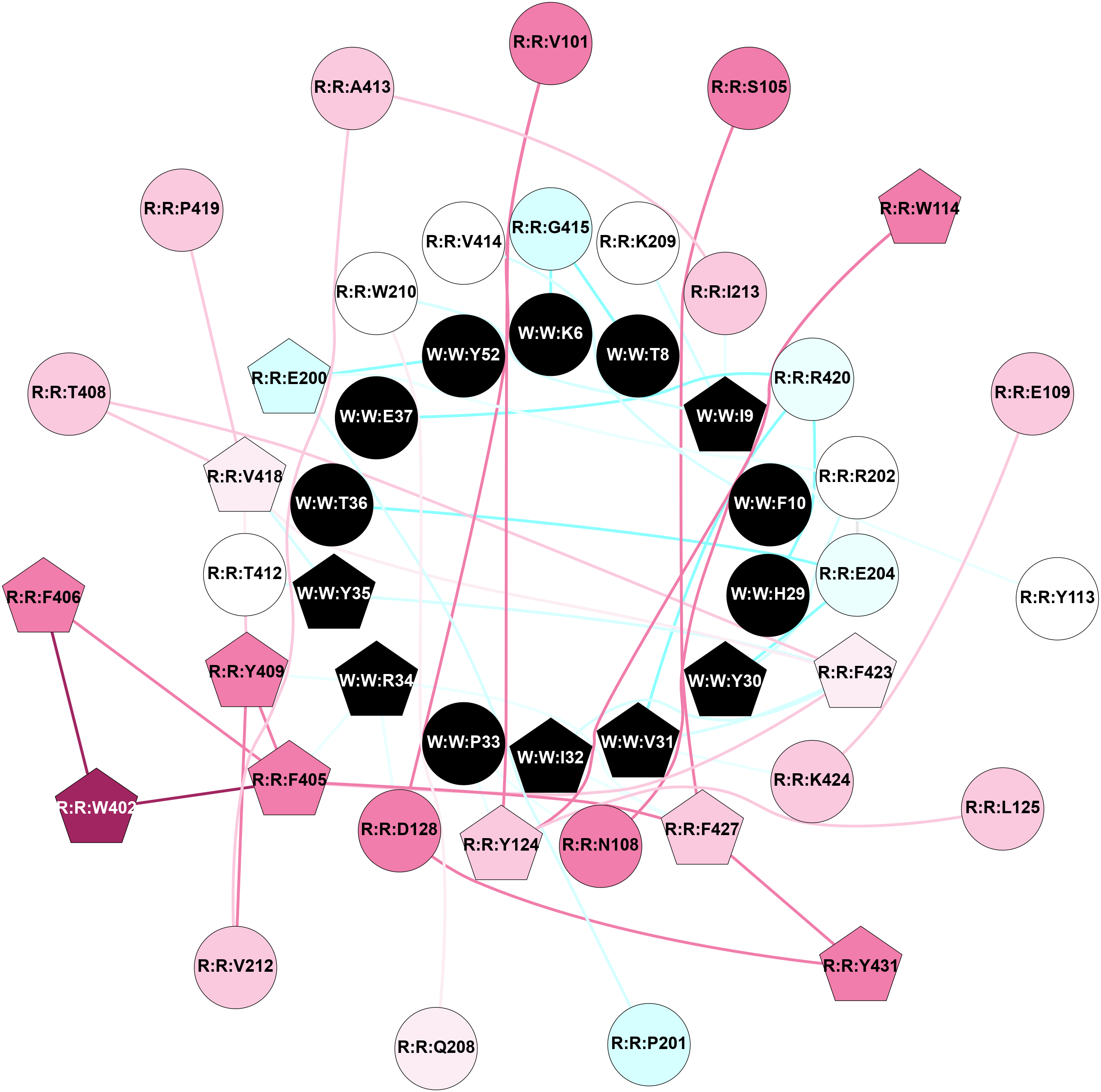 Show 63.64 Single 9IQS Muscarinic toxin 3 9IQS-M4 -Muscarinic toxin 3 Show 52.38 Single 8W1V PubChem 171716265 8W1V-β2 -PubChem 171716265 Show 50.00 Single 5N2R PSB-36 5N2R-A2A -PSB-36-Na Show 50.00 Single 8HN1 Toxin AdTx1 8HN1-Alpha1A-Toxin AdTx1 Show 50.00 Single 9IQV Muscarinic toxin 3 9IQV-Alpha1A-Muscarinic toxin 3 Show 50.00 Consensus gi_ghrelin Orthosteric Ligand 7NA7-Ghrelin-Ghrelin-27-Gi1/β1/γ2 7NA8-Ghrelin-PubChem 178024-Gi1/β1/γ2 Show 47.37 Single 7T94 LY2119620 7T94-M2 -Acetylcholine-LY2119620-chim(NtGi1-Go)/β1/γ2 Show 45.83 Single 9BUY LM189 9BUY-β2 -LM189-Gi1/β1/γ2 Show 45.45 Single 8HK2 C3a anaphylatoxin 8HK2-C3aB -C3a anaphylatoxin-Gi1/β1/γ2 Show 45.45 Single 8I9A EP54 8I9A-C3aB -EP54-chim(NtGi1-Gs-CtGq)/β1/γ2 Show 45.45 Single 8J6D EP141 8J6D-C3aB -EP141-Go/β1/γ2 Show 45.45 Consensus c3a_on Orthosteric Ligand 8HK2-C3aB -C3a anaphylatoxin-Gi1/β1/γ2 8IA8-C3aB -E7 peptide-Gi1/β1/γ2 Show 45.00 Single 8RW7 StilSwitch1 8RW7-A2A -StilSwitch1-Na Show 44.44 Single 8HCX Endothelin-1 8HCX-ETB -Endothelin-1-chim(NtGi2L-Gs-CtGq)/β1/γ2 Show 44.00 Single 6DO1 Angiotensin-like peptide S1I8 6DO1-AT1 -Angiotensin-like peptide S1I8 Show 44.00 Consensus compl-peptide_on Orthosteric Ligand c5a1_on c3a_on Show 43.48 Single 8K4O CXCL1 8K4O-KSHV-CXCL1-Gi1/β1/γ1 Show 43.48 Consensus c3a_on_gp Orthosteric Ligand 8HK2-C3aB -C3a anaphylatoxin-Gi1/β1/γ2 8IA8-C3aB -E7 peptide-Gi1/β1/γ2 Show 43.33 Consensus ccr5_on_gp Orthosteric Ligand 7O7F-CCR5-6P4-CCL5-Gi1/β1/γ1 7F1Q-CCR5-MIP-1a-Gi1/β1/γ2 Show 42.86 Single 5N2S PSB36 5N2S-A1 -PSB36 Show 42.31 Single 5WF5 UK-432097 5WF5-A2A -UK-432097 Show 42.31 Single 8XIR Pasireotide 8XIR-SST3-Pasireotide-chim(NtGi1-Gs-CtGi1)/β1/γ2 Show 42.31 Consensus angiotensin_on Orthosteric Ligand at1_on Show 42.31 Consensus at1_on Orthosteric Ligand 7F6G-AT1 -SAR1-AngII-Gq/β1/γ2 Show 42.31 Consensus compl-peptide_on_gp Orthosteric Ligand c5a1_on_gp c3a_on_gp Show 42.11 Single 4MQT LY2119620 4MQT-M2 -Iperoxo-LY2119620 Show 42.11 Single 8GNG Istradefylline 8GNG-A2A -Istradefylline Show 42.11 Single 8RW0 Istradefylline 8RW0-A2A -Istradefylline-Na Show 41.67 Single 7YAE Octreotide 7YAE-SST2-Octreotide-Gi1/β1/γ2 Show 40.91 Single 8I9L C3a anaphylatoxin 8I9L-C3aB -C3a anaphylatoxin-Go/β1/γ2 Show 40.74 Single 7F6G SAR1-AngII 7F6G-AT1 -SAR1-AngII-Gq/β1/γ2 Show 40.74 Consensus angiotensin_on_gp Orthosteric Ligand at1_on_gp Show 40.74 Consensus at1_on_gp Orthosteric Ligand 7F6G-AT1 -SAR1-AngII-Gq/β1/γ2 Show 40.74 Consensus gq_angiotensin Orthosteric Ligand 7F6G-AT1 -SAR1-AngII-Gq/β1/γ2 Show 40.74 Consensus peptide_offon_gp Orthosteric Ligand peptide_on_gp peptide_off Show 40.00 Single 6IGL IRL1620 6IGL-ETB -IRL1620 Show 40.00 Single 6U1N LY2119620 6U1N-M2 -LY2119620-Arrestin2 Show 40.00 Single 6WJC Muscarinic toxin 7 6WJC-M1 -Atropine-Muscarinic toxin 7 Show 40.00 Single 7ARO LUF5833 7ARO-A2A -LUF5833-Na Show 40.00 Single 7F8X NN9056 7F8X-CCKA -NN9056 Show 40.00 Single 7NA7 Ghrelin-27 7NA7-Ghrelin-Ghrelin-27-Gi1/β1/γ2 Show 40.00 Single 8RWC StilSwitch2 8RWC-A2A -StilSwitch2-Na Show 40.00 Single 8RWD StilSwitch3 8RWD-A2A -StilSwitch3-Na Show 40.00 Single 8RWI StilSwitch2 8RWI-A2A -StilSwitch2-Na Show 39.29 Consensus chemokine_on_gp Orthosteric Ligand ccr_on_gp cxcr_on_gp Show 39.13 Single 6OS2 TRV026 6OS2-AT1 -TRV026 Show 39.13 Single 7L1U Orexin 7L1U-OX2 -Orexin-chim(NtGi1-Gs-CtGq)/β1/γ2 Show 39.13 Single 8IBU Erythromycin-A 8IBU-Motilin-Erythromycin-A-chim(NtGi1-Gs-CtGq)/β1/γ2 Show 39.13 Single 8JJL Olodaterol 8JJL-β2 -Olodaterol Show 39.13 Consensus motilin_on_gp Orthosteric Ligand 8IBU-Motilin-Erythromycin-A-chim(NtGi1-Gs-CtGq)/β1/γ2 Show 38.89 Single 7V6A PubChem 9864275 7V6A-M4 -PubChem 9864275-Gi1/β1/γ2 Show 38.71 Single 8U1U CCL1 8U1U-CCR8-CCL1-Gi1/β1/γ2 Show 38.71 Consensus gi_endothelin Orthosteric Ligand 8IY5-ETB -Endothelin-1-Gi1/β1/γ2 8HBD-ETB -IRL1620-Gi1/β1/γ2 Show 38.46 Single 3QAK UK-432097 3QAK-A2A -UK-432097 Show 38.46 Single 5XJM (Sar1,Ile8)-Angiotensin II 5XJM-AT2 -(Sar1,Ile8)-Angiotensin II Show 38.46 Single 8IBV Motilin 8IBV-Motilin-Motilin-chim(NtGi1-Gs-CtGq)/β1/γ2 Show 38.46 Single 8WSS Pro-MCH 8WSS-MCH1-Pro-MCH-Gi1/β1/γ1 Show 38.46 Single 9EAI Nanobody AT209 9EAI-AT1 -Losartan-Nanobody AT209 Show 38.46 Consensus gi_cck Orthosteric Ligand 7EZH-CCKA -Cholecystokinin-8-Gi1/β1/γ2 7F8V-CCKB -Gastrin-17-Gi2/β1/γ2 Show 38.10 Single 6D27 CAY10471 6D27-DP2 -CAY10471 Show 38.10 Single 6LPJ ZM-241385 6LPJ-A2A -ZM-241385-Na Show 38.10 Single 6LPK ZM-241385 6LPK-A2A -ZM-241385-Na Show 38.10 Single 7TRQ VU0467154 7TRQ-M4 -Iperoxo-VU0467154-Gi1/β1/γ2 Show 38.10 Single 8RWX StilSwitch3 8RWX-A2A -StilSwitch3-Na Show 38.10 Single 8YH5 Riboprine 8YH5-A3A -Riboprine-Gi1/β1/γ2 Show 37.93 Single 5UIW 5P7-CCL5 5UIW-CCR5-5P7-CCL5 Show 37.93 Single 8XVE BQ3020 8XVE-ETB -BQ3020-chim(Gs-CtGq)/β1/γ2 Show 37.93 Consensus ccr5_off Orthosteric Ligand 5UIW-CCR5-5P7-CCL5 Show 37.93 Consensus ccr5_on Orthosteric Ligand 7O7F-CCR5-6P4-CCL5-Gi1/β1/γ1 7F1Q-CCR5-MIP-1a-Gi1/β1/γ2 Show 37.93 Consensus gi_compl-pept Orthosteric Ligand 8HK5-C5a1 -Complement C5-Gi1/β1/γ2 8IA8-C3aB -E7 peptide-Gi1/β1/γ2 7Y66-C5a1 -BM213-Gi1/β1/γ2 7Y67-C5a1 -C089 peptide-Gi1/β1/γ2 8HK2-C3aB -C3a anaphylatoxin-Gi1/β1/γ2 7Y64-C5a1 -C5a anaphylatoxin-Gi1/β1/γ2 Show 37.93 Consensus gi_peptide Orthosteric Ligand gi_cck gi_apelin gi_compl-pept gi_endothelin gi_formylpeptide gi_galanin gi_ghrelin gi_npy gi_neurotensin gi_opioid gi_orexin gi_relaxin gi_somatostatin Show 37.50 Single 6BQG Ergotamine 6BQG-5-HT2C -Ergotamine Show 37.50 Single 7EZC UKA 7EZC-A2A -UKA Show 37.50 Single 8HBD IRL1620 8HBD-ETB -IRL1620-Gi1/β1/γ2 Show 37.50 Single 8I95 EP54 8I95-C3aB -EP54-Go/β1/γ2 Show 37.50 Single 8ZPL HF51116 8ZPL-CXCR4-HF51116 Show 37.50 Consensus cck_on Orthosteric Ligand ccka_on cckb_on Show 37.50 Consensus cck_on_gp Orthosteric Ligand ccka_on_gp cckb_on_gp Show 37.50 Consensus endothelin_on_gp Orthosteric Ligand etb_on_gp eta_on_gp Show 