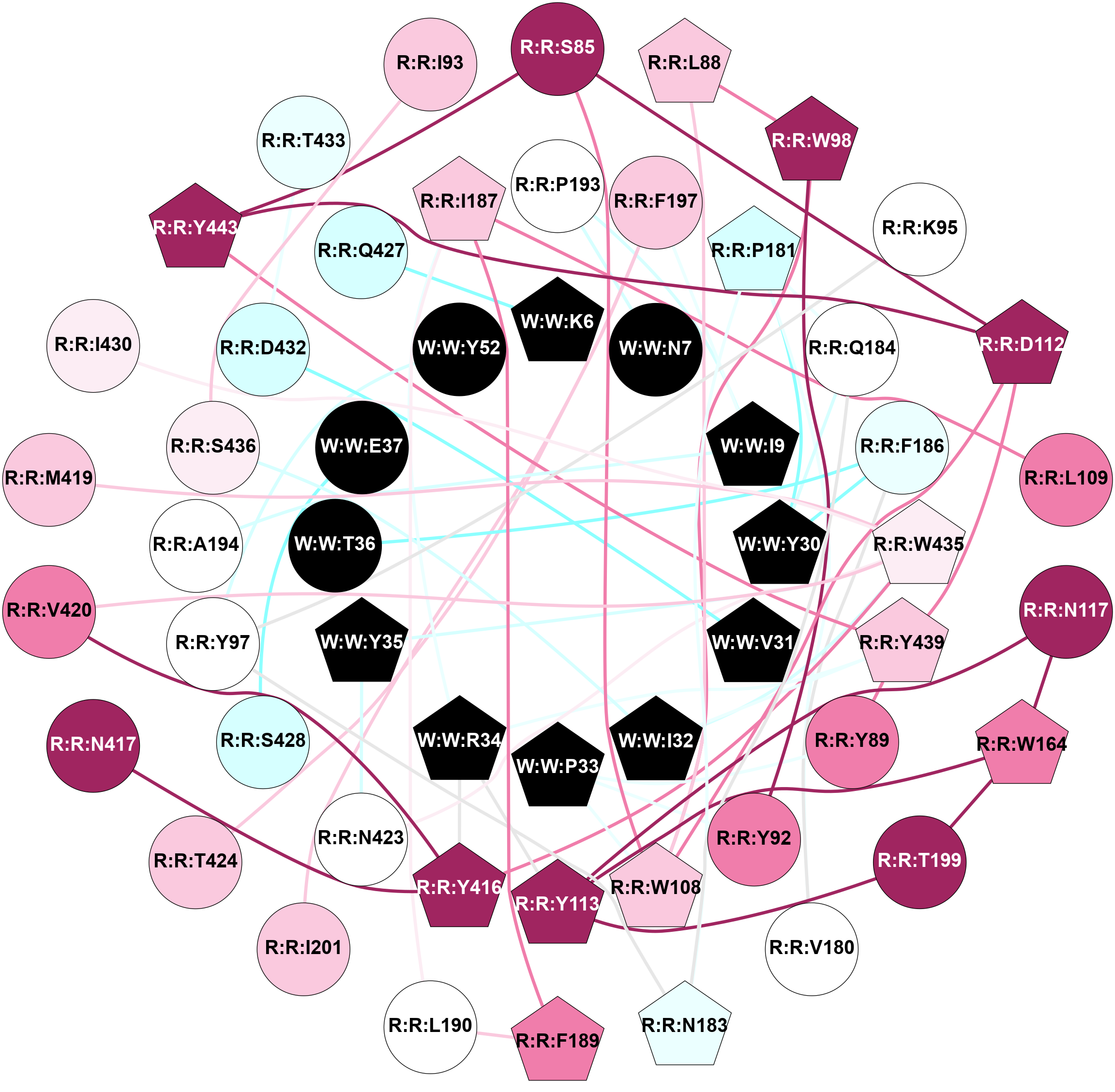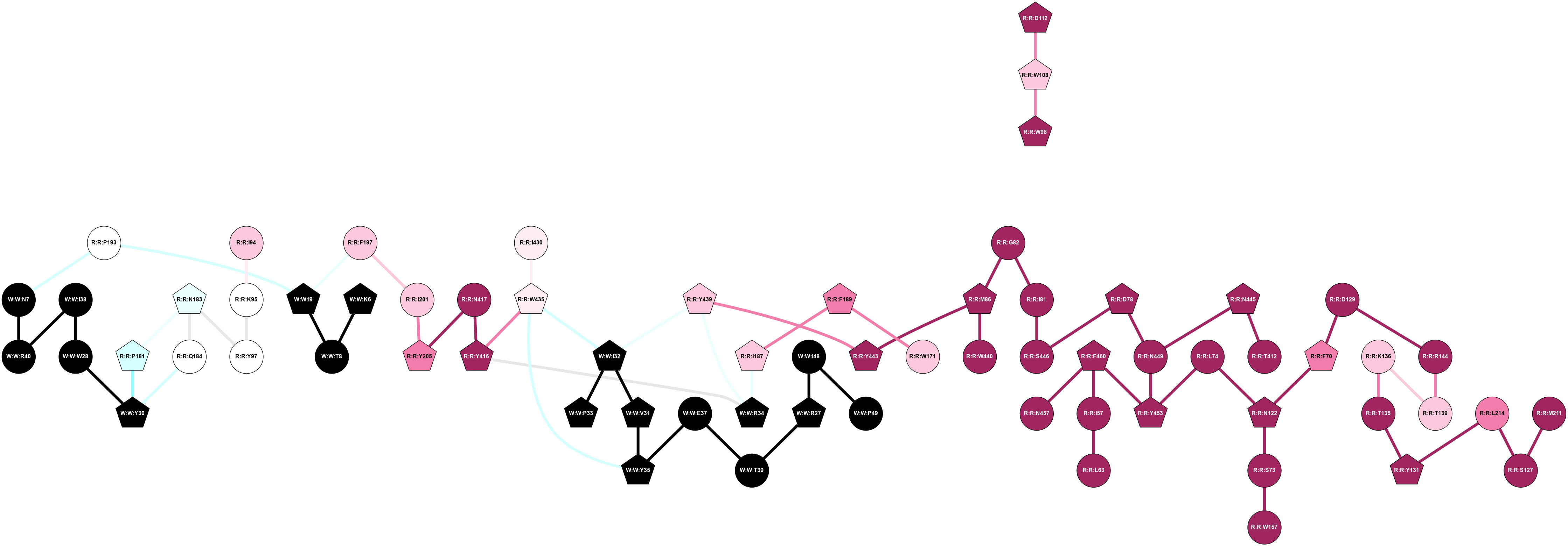 Show 63.64 Single 9IQR Muscarinic toxin 3 9IQR-α2a -Muscarinic toxin 3 Show 56.52 Single 9IQV Muscarinic toxin 3 9IQV-Alpha1A-Muscarinic toxin 3 Show 55.56 Single 6U1N LY2119620 6U1N-M2 -LY2119620-Arrestin2 Show 55.56 Single 7T94 LY2119620 7T94-M2 -Acetylcholine-LY2119620-chim(NtGi1-Go)/β1/γ2 Show 52.38 Single 8HK2 C3a anaphylatoxin 8HK2-C3aB -C3a anaphylatoxin-Gi1/β1/γ2 Show 50.00 Single 4MQT LY2119620 4MQT-M2 -Iperoxo-LY2119620 Show 50.00 Single 6D26 Fevipiprant 6D26-DP2 -Fevipiprant Show 50.00 Single 8HN1 Toxin AdTx1 8HN1-Alpha1A-Toxin AdTx1 Show 50.00 Consensus dp2_off Orthosteric Ligand 6D26-DP2 -Fevipiprant Show 50.00 Consensus dp_off Orthosteric Ligand dp2_off Show 48.00 Consensus angiotensin_on Orthosteric Ligand at1_on Show 48.00 Consensus at1_on Orthosteric Ligand 7F6G-AT1 -SAR1-AngII-Gq/β1/γ2 Show 47.62 Single 7XBD Galanin 7XBD-GAL2 -Galanin-chim(NtGi2L-Gs-CtGq)/β1/γ2 Show 47.37 Single 6WJC Muscarinic toxin 7 6WJC-M1 -Atropine-Muscarinic toxin 7 Show 46.15 Single 6JOD Angiotensin II 6JOD-AT2 -Angiotensin II Show 46.15 Single 7F6G SAR1-AngII 7F6G-AT1 -SAR1-AngII-Gq/β1/γ2 Show 46.15 Consensus angiotensin_on_gp Orthosteric Ligand at1_on_gp Show 46.15 Consensus at1_on_gp Orthosteric Ligand 7F6G-AT1 -SAR1-AngII-Gq/β1/γ2 Show 46.15 Consensus gq_angiotensin Orthosteric Ligand 7F6G-AT1 -SAR1-AngII-Gq/β1/γ2 Show 46.15 Consensus peptide_offon_gp Orthosteric Ligand peptide_on_gp peptide_off Show 45.83 Single 9BUY LM189 9BUY-β2 -LM189-Gi1/β1/γ2 Show 45.45 Single 6OS2 TRV026 6OS2-AT1 -TRV026 Show 45.45 Single 8I9A EP54 8I9A-C3aB -EP54-chim(NtGi1-Gs-CtGq)/β1/γ2 Show 45.45 Single 8J6D EP141 8J6D-C3aB -EP141-Go/β1/γ2 Show 45.45 Single 8W1V PubChem 171716265 8W1V-β2 -PubChem 171716265 Show 45.45 Consensus c3a_on Orthosteric Ligand 8HK2-C3aB -C3a anaphylatoxin-Gi1/β1/γ2 8IA8-C3aB -E7 peptide-Gi1/β1/γ2 Show 45.45 Consensus galanin_on Orthosteric Ligand gal2_on gal1_on Show 45.45 Consensus galanin_on_gp Orthosteric Ligand gal2_on_gp gal1_on_gp Show 45.16 Single 6LRY Sarafotoxin-B 6LRY-ETB -Sarafotoxin-B Show 45.00 Single 7TRQ VU0467154 7TRQ-M4 -Iperoxo-VU0467154-Gi1/β1/γ2 Show 44.44 Single 7T96 LY2119620 7T96-M2 -Acetylcholine-LY2119620-Go/β1/γ2 Show 44.44 Single 7TRP LY2033298 7TRP-M4 -Iperoxo-LY2033298-Gi1/β1/γ2 Show 44.44 Consensus chemokine_on_gp Orthosteric Ligand ccr_on_gp cxcr_on_gp Show 44.00 Single 6DO1 Angiotensin-like peptide S1I8 6DO1-AT1 -Angiotensin-like peptide S1I8 Show 44.00 Consensus compl-peptide_on Orthosteric Ligand c5a1_on c3a_on Show 43.48 Single 7EZC UKA 7EZC-A2A -UKA Show 43.48 Consensus c3a_on_gp Orthosteric Ligand 8HK2-C3aB -C3a anaphylatoxin-Gi1/β1/γ2 8IA8-C3aB -E7 peptide-Gi1/β1/γ2 Show 43.48 Consensus prostanoid_off Orthosteric Ligand ep_off dp_off Show 43.33 Consensus ccr5_on_gp Orthosteric Ligand 7O7F-CCR5-6P4-CCL5-Gi1/β1/γ1 7F1Q-CCR5-MIP-1a-Gi1/β1/γ2 Show 42.86 Single 5N2R PSB-36 5N2R-A2A -PSB-36-Na Show 42.86 Single 8ZPT PrRP20 8ZPT-PrRP-PrRP20-chim(NtGi1-Gs-CtGq)/β1/γ2 Show 42.86 Single 9IYB Prostaglandin 9IYB-DP2 -Prostaglandin-A1D5Q-Gi1/β1/γ2 Show 42.86 Consensus gi_compl-pept Orthosteric Ligand 8HK5-C5a1 -Complement C5-Gi1/β1/γ2 8IA8-C3aB -E7 peptide-Gi1/β1/γ2 7Y66-C5a1 -BM213-Gi1/β1/γ2 7Y67-C5a1 -C089 peptide-Gi1/β1/γ2 8HK2-C3aB -C3a anaphylatoxin-Gi1/β1/γ2 7Y64-C5a1 -C5a anaphylatoxin-Gi1/β1/γ2 Show 42.86 Consensus gi_peptide Orthosteric Ligand gi_cck gi_apelin gi_compl-pept gi_endothelin gi_formylpeptide gi_galanin gi_ghrelin gi_npy gi_neurotensin gi_opioid gi_orexin gi_relaxin gi_somatostatin Show 42.31 Single 5WF5 UK-432097 5WF5-A2A -UK-432097 Show 42.31 Single 8XIR Pasireotide 8XIR-SST3-Pasireotide-chim(NtGi1-Gs-CtGi1)/β1/γ2 Show 42.31 Consensus compl-peptide_on_gp Orthosteric Ligand c5a1_on_gp c3a_on_gp Show 42.31 Consensus peptide_offon Orthosteric Ligand peptide_off peptide_on Show 41.94 Single 8HBD IRL1620 8HBD-ETB -IRL1620-Gi1/β1/γ2 Show 41.94 Consensus etb_on_gp Orthosteric Ligand 8IY5-ETB -Endothelin-1-Gi1/β1/γ2 8HBD-ETB -IRL1620-Gi1/β1/γ2 Show 41.67 Single 9EAJ Nanobody AT209 9EAJ-AT1 -Nanobody AT209 Show 41.38 Consensus gq_peptide Orthosteric Ligand gq_cck gq_kisspeptin gq_bradykinin gq_bombesin gq_angiotensin Show 41.38 Consensus peptide_on Orthosteric Ligand cck_on angiotensin_on apelin_on bombesin_on bradykinin_on compl-peptide_on endothelin_on formylpeptide_on galanin_on ghrelin_on kisspeptin_on melanocortin_on motilin_on neuromedin-u_on npy_on neurotensin_on opioid_on orexin_on relaxin_on somatostatin_on tachykinin_on trh_on vasop-oxy_on Show 41.38 Consensus peptide_on_gp Orthosteric Ligand cck_on_gp angiotensin_on_gp apelin_on_gp bombesin_on_gp bradykinin_on_gp compl-peptide_on_gp endothelin_on_gp formylpeptide_on_gp galanin_on_gp ghrelin_on_gp kisspeptin_on_gp melanocortin_on_gp motilin_on_gp neuromedin-u_on_gp npy_on_gp neurotensin_on_gp opioid_on_gp orexin_on_gp relaxin_on_gp somatostatin_on_gp tachykinin_on_gp trh_on_gp vasop-oxy_on_gp Show 40.91 Single 4IAQ Dihydroergotamine 4IAQ-5-HT1B -Dihydroergotamine Show 40.91 Single 6OS1 TRV026 6OS1-AT1 -TRV026 Show 40.91 Single 7M8W 15r-Methyl-Prostaglandin D2 7M8W-DP2 -15r-Methyl-Prostaglandin D2-Na Show 40.91 Single 8ZWF JR14a 8ZWF-C3aB -JR14a Show 40.74 Single 7XK8 Neuromedin-U-25 7XK8-NMUR2-Neuromedin-U-25-Gi1/β1/γ2 Show 40.74 Single 8XWQ Endothelin-1 8XWQ-ETB -Endothelin-1-Gi1/β1/γ2 Show 40.00 Single 6IGL IRL1620 6IGL-ETB -IRL1620 Show 40.00 Single 7F61 PF-03654746 7F61-H3 -PF-03654746 Show 40.00 Single 7T32 ZM-241385 7T32-A2A -ZM-241385 Show 40.00 Single 7W0P Elabela 7W0P-Apelin-Elabela-Gi1/β1/γ2 Show 40.00 Single 9HB3 Mambaquaretin-1 9HB3-V2 -Mambaquaretin-1 Show 40.00 Single 9JMD Azithromycin 9JMD-Motilin-Azithromycin-chim(Gs-CtGq)/β1/γ2 Show 40.00 Consensus etb_on Orthosteric Ligand 8IY5-ETB -Endothelin-1-Gi1/β1/γ2 8HBD-ETB -IRL1620-Gi1/β1/γ2 Show 40.00 Consensus nop_on Orthosteric Ligand 8F7X-NOP-Nociceptin-Gi1/β1/γ2 Show 40.00 Consensus nop_on_gp Orthosteric Ligand 8F7X-NOP-Nociceptin-Gi1/β1/γ2 Show 39