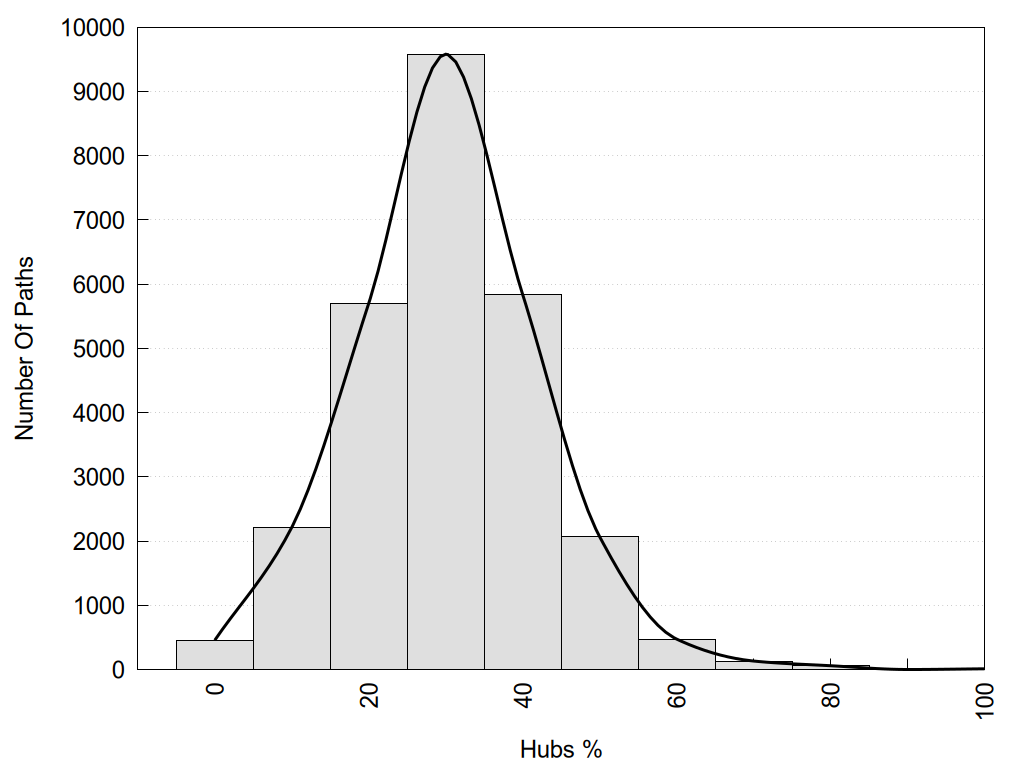 Hub1?, Hub2?: "Yes" if the corresponding node has more than 3 links, otherwise "No".