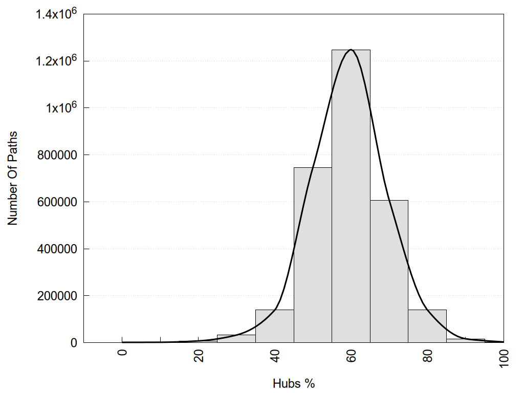 Hub1?, Hub2?: "Yes" if the corresponding node has more than 3 links, otherwise "No".