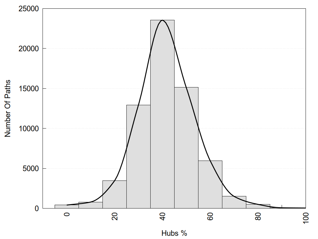 Hub1?, Hub2?: "Yes" if the corresponding node has more than 3 links, otherwise "No".
