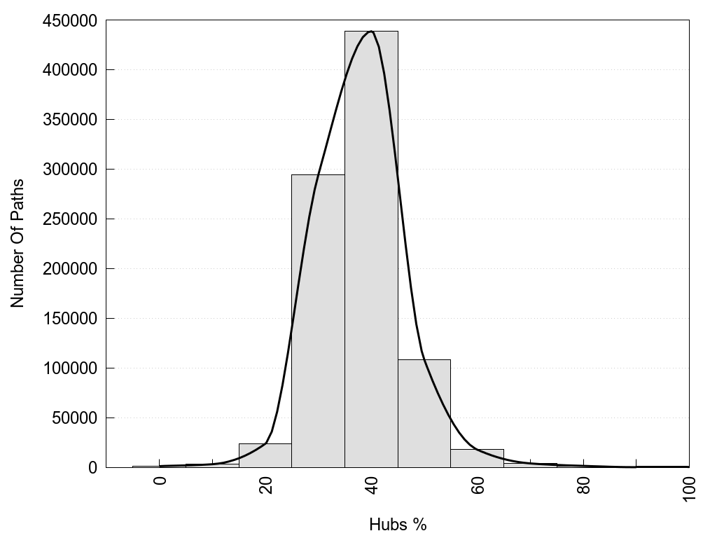 Hub1?, Hub2?: "Yes" if the corresponding node has more than 3 links, otherwise "No".