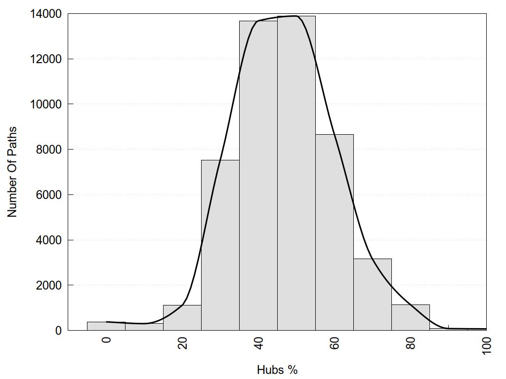Hub1?, Hub2?: "Yes" if the corresponding node has more than 3 links, otherwise "No".