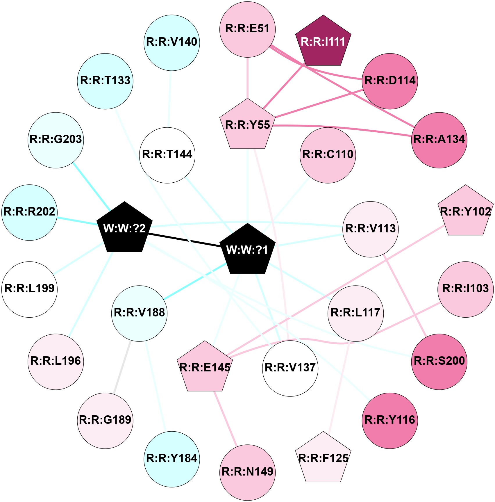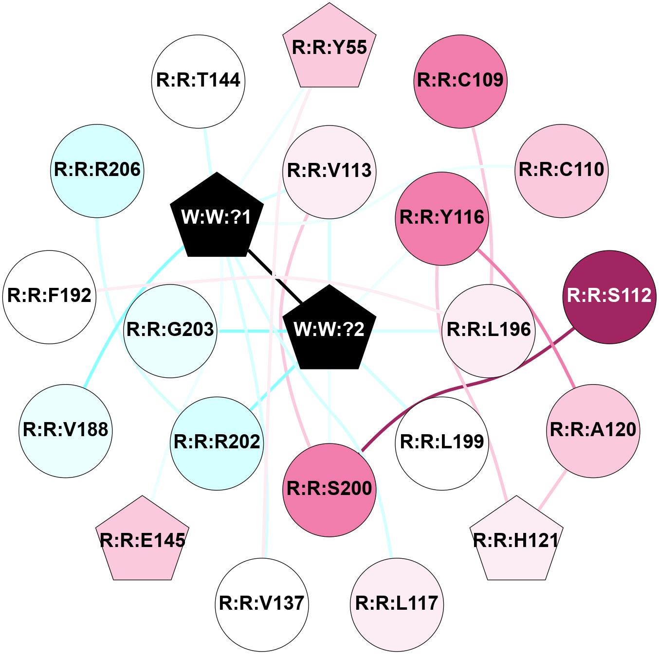 Links and nodes colored according to ConSurf Conservation Grade (See documentation): n/a 1 2 3 4 5 6 7 8 9 |
