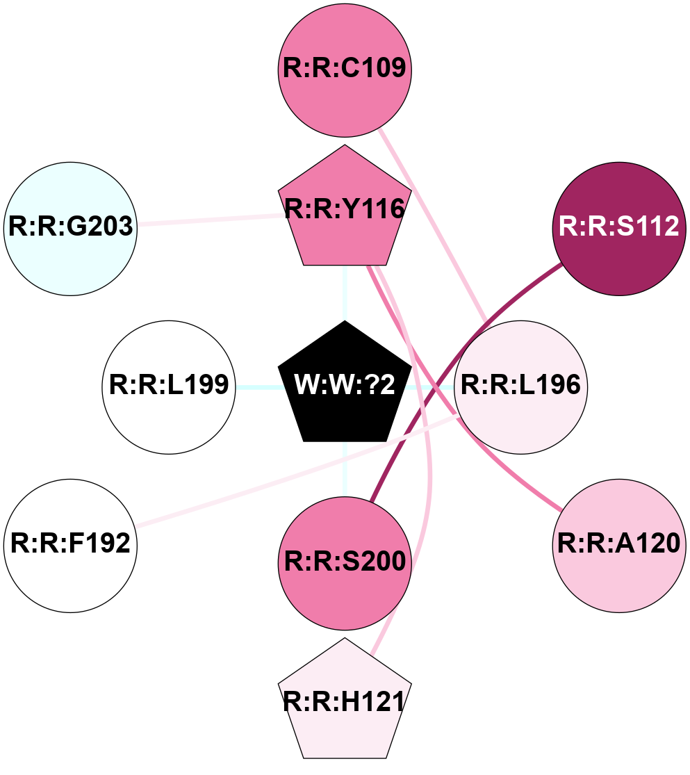 Links and nodes colored according to ConSurf Conservation Grade (See documentation): n/a 1 2 3 4 5 6 7 8 9 |