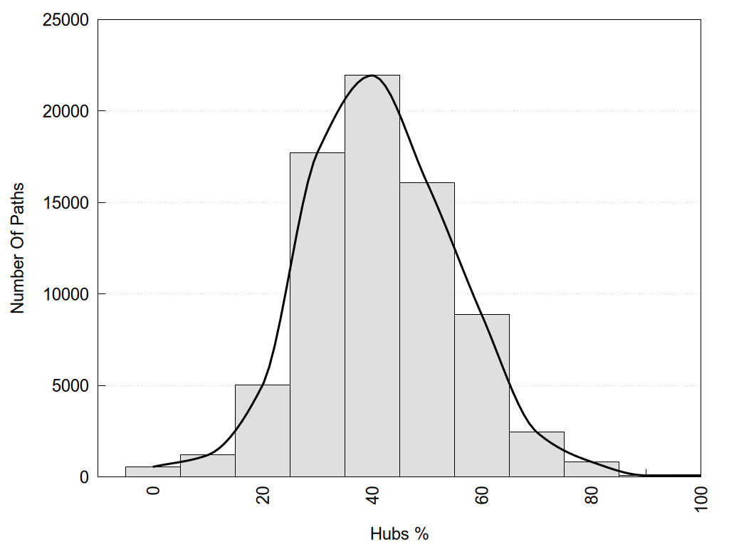 Hub1?, Hub2?: "Yes" if the corresponding node has more than 3 links, otherwise "No".