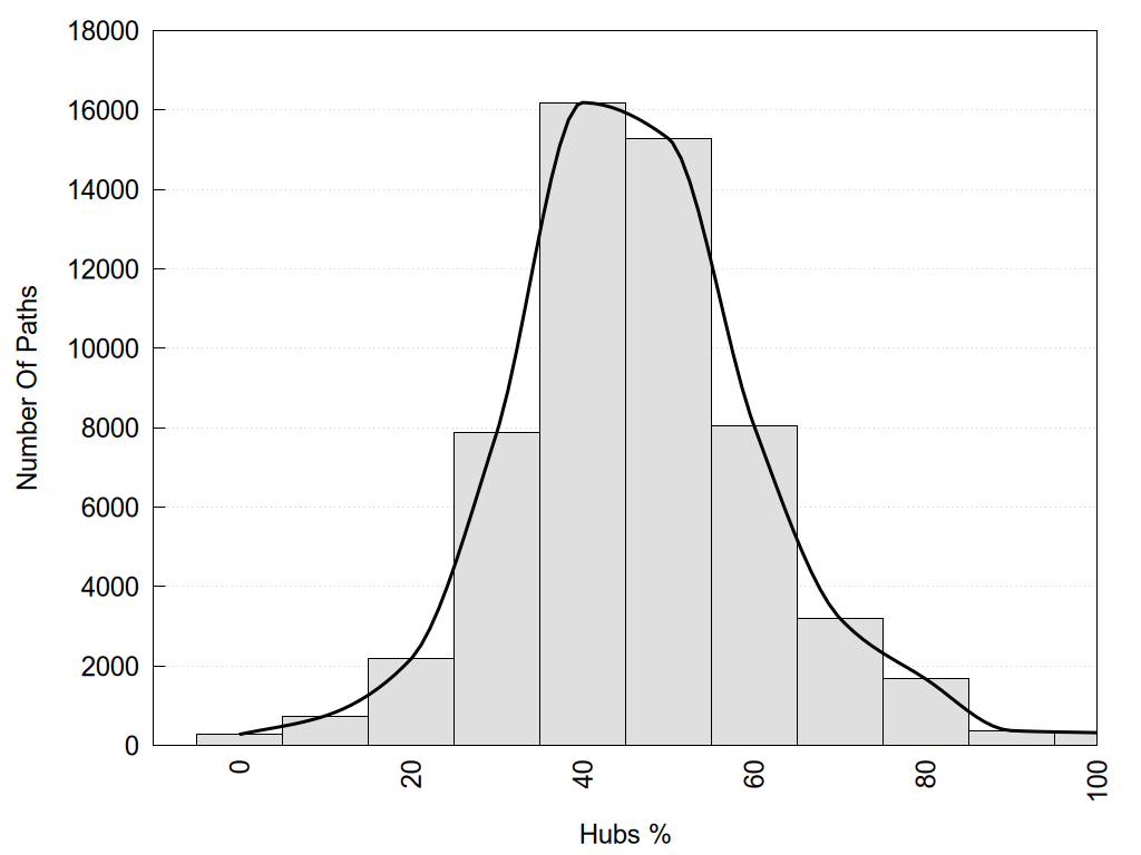 Hub1?, Hub2?: "Yes" if the corresponding node has more than 3 links, otherwise "No".